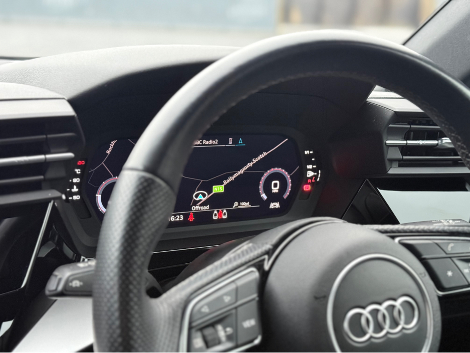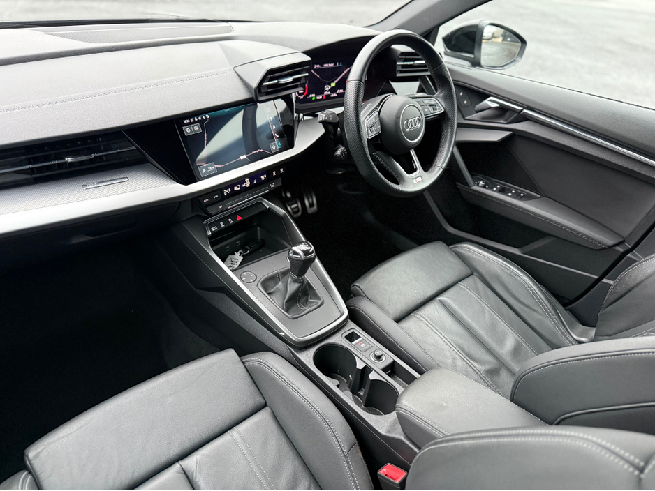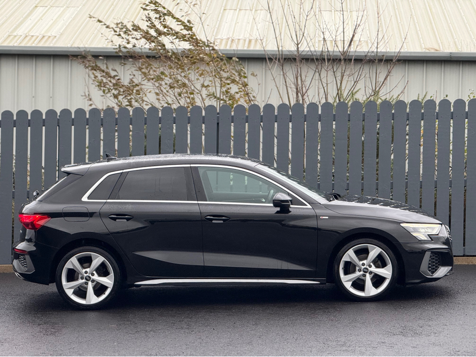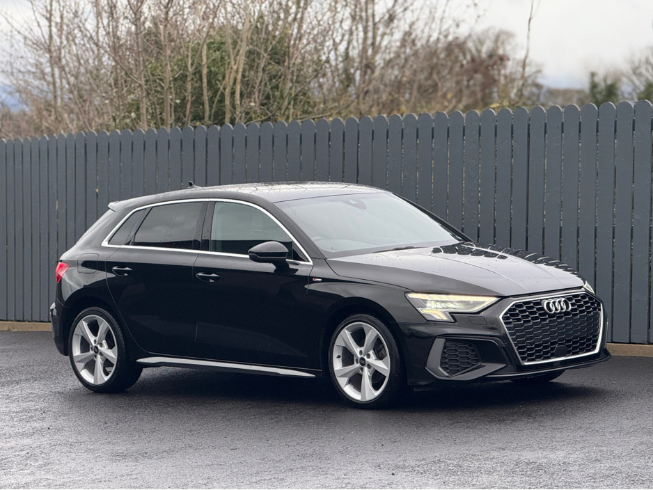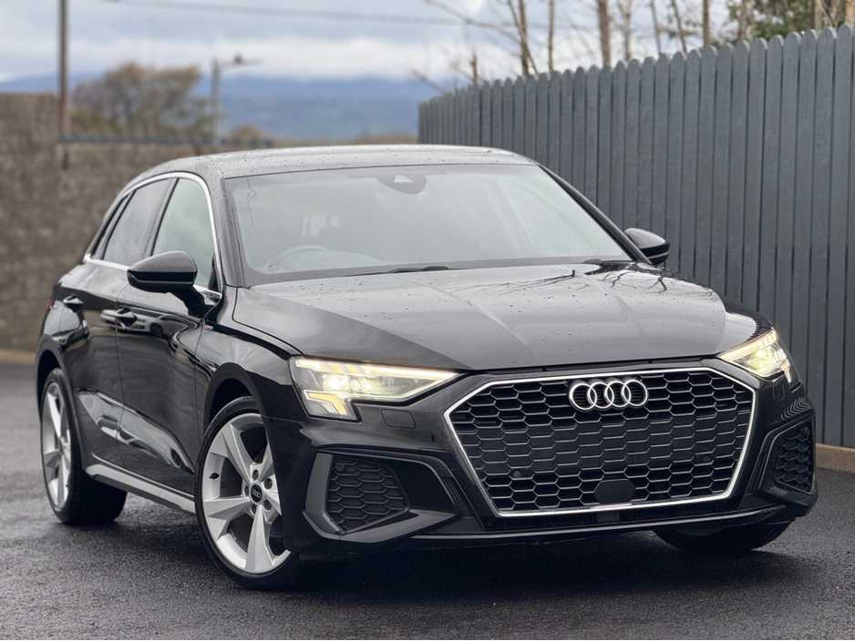 2022 Audi A3 S-Line Sportback, finished in Brilliant Black with 5 Spoke 19" Alloy Wheels. Signature Honeycomb Grill.