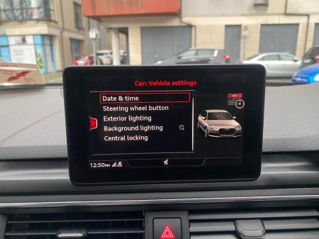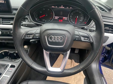 This is a lovely Audi A4 with very low mileage and in exceptional condition all round. It was very well maintained by the last owner. Car comes with multi function steering wheel, electric heated mir ... rors, electric, electric mirrors, arm rest, cup holders, leather stitched steering wheel, sat navigation, cruise control, Bluetooth, tinted windows, pop up screen, ally wheels, fog lamps, very large boot space, 2 keys, valeted and serviced. Central Locking, Electric Windows, Airbag, Centre Armrest, Multi-function steering wheel, Satellite Navigation, Traction Control, Metallic Paint, Parking Sensors, Bluetooth, EBD, Isofix, Active Safety Braking / City Brake / Collision Alert, Stop/Start Button, External Devices Connectivity, Cup holders, Remote boot/hatch/rear door release, Stability control