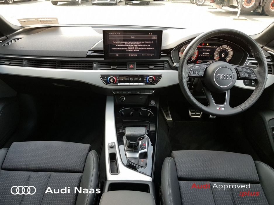 Mobile Phone Preparation-Bluetooth, Touchscreen Stereo, Audi Drive Select, Audi Stop/Start, Auto Handbrake, Cruise Control, 19"Alloys, S-Line Body Styling, Armrest, Button Start-Stop, Climate Control, ... Drivers Information System, Electric Mirrors, Electric Windows, Illuminated Vanity Mirror, LED Interior Light Pack, Rake/Reach Adjustable Steering Column, Split Fold Rear Seats, 3 Spoke Sports Steering Wheel, Front Sports Seats including Electric Lumbar Support, Heated Seats, Anti-Lock Brake System, Child Locks, Front and Rear Park Assist, Immobilizer, Reverse Camera, Remote Central Locking, Diesel Particulate Filter, USB, Audi Connect