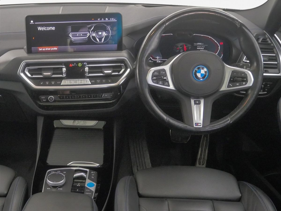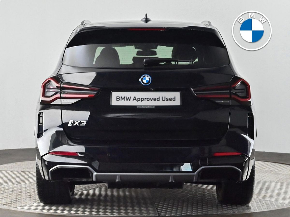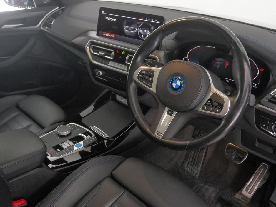 Belts, Aluminium Rhombicle with Pearl Chrome, Charging cable Professional (Mode 3), Flexible Charging Cable (Mode 2), Galvanic Controls, eDrive Exterior Sound, BMW IconicSounds Electric, Luggage Net, Sun Protection Glass, Rear-view Mirror with Auto dimming, Sport seats, Front Lumbar Support, Driver Seat Backrest Width Adjustment, Heated front seats, Active Protection, Parking Assistant Plus, BMW Online Services, Connected Package Pro (limited duration), Drive Recorder, Live Cockpit Professional, Gesture Control, DAB Radio, Harman/Kardon Surround Sound Audio, Indv. high-gloss shadowline- extended, M Sport Exterior Styling, High-gloss Shadowline Exterior Trim, Anthracite Headlining, Decoding additional functions, Control E, iX3 Pro Package, Model Specific Design Elements