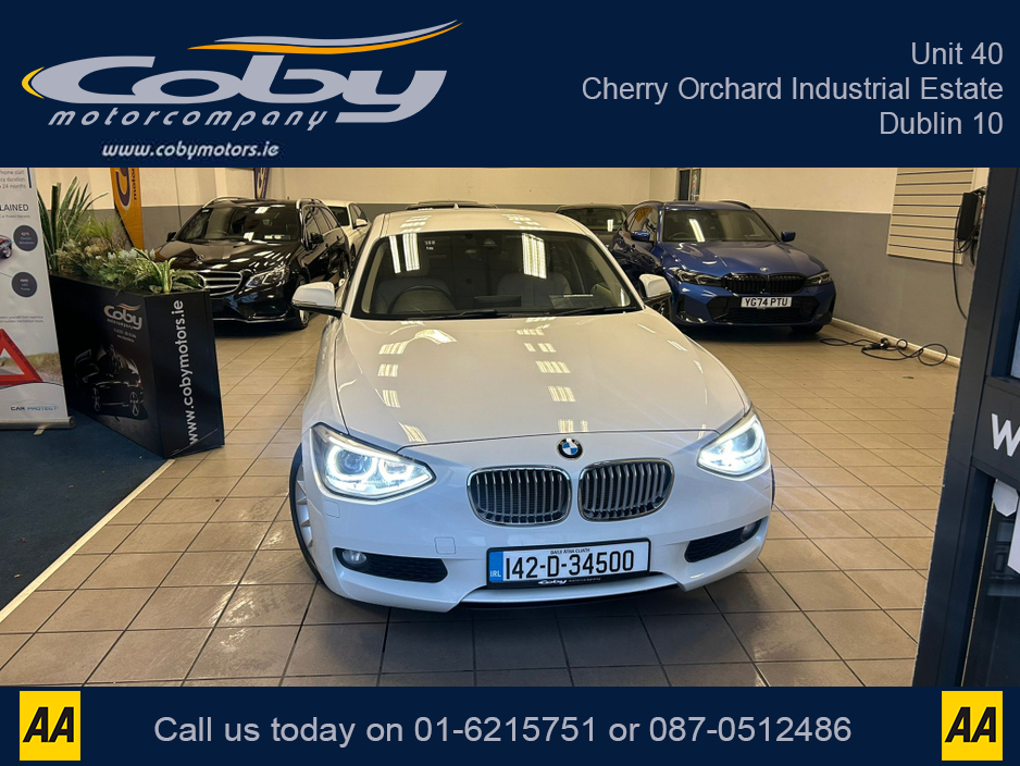 2014 BMW 1 Series 1.6 5DR AUTO. Sat Nav, Pristine Car with only 104km, 2 Keys, New NCT done before collection. Full Leather, Alloy Wheels, Dual Climate Control, Heated Seats, Reverse Camera, Bluetooth, MFSW and more.