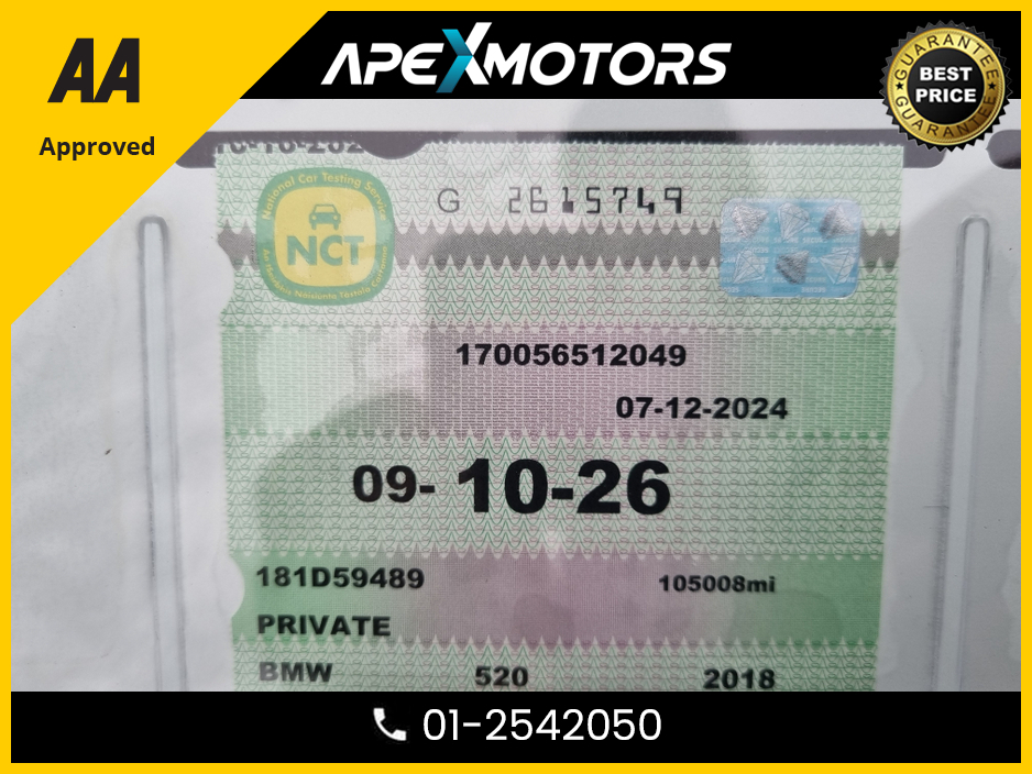 2018 BMW 5 Series FINANCE ARRANGED * G30 XDRIVE M SPORT 4DR * M-SPORT ( TOP-SPEC) * HEATED SEATS * NEW NCT OCT-26 * COLOUR REVERSE CAMERA * AA APPROVED * 101 SAFETY CHECKLIST * AUTOMATIC AWD * IMMACULATE * LOW MILES
