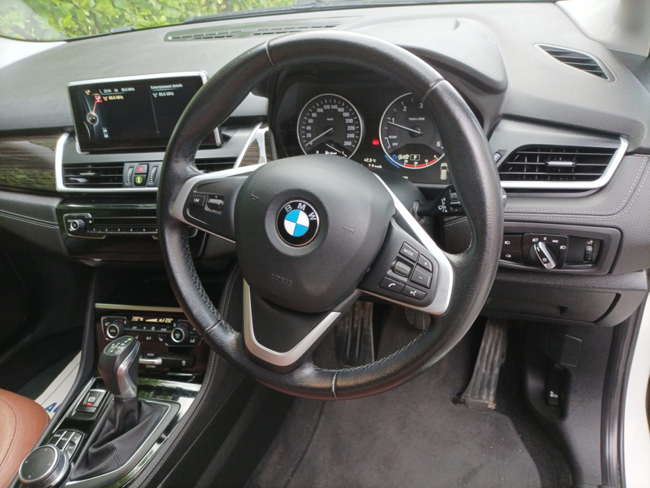 Immaculate 2017 BMW 218 diesel Grand Tourer luxury 7-seater fitted with BMW 2.0 BMW 4-cylinder twin turbo diesel engine. This 7-seater needs to be seen to be appreciated, finished in pearl white metallic with contrasting antique amber saddle interior. The car is spotless. Service history 9 inputs. Lovely car to drive, powerful and economical, very spacious and comfortable car to drive, loaded with extras including automatic transmission, sports leather steering wheel, multi-function steering wheel, performance control, BMW multi-spoke alloy wheels, folding mirrors, automatic trunk lid mechanism, comfort access, chrome line exterior, reverse camera, velour floor mats, interior and exterior auto dip mirrors, electric memory seats, front armrest heated front seats, park distance control, fog lights, rain sensor, automatic air conditioning, light package, LED headlights, driving assist, luxury line, automatic locking, proximity keys, push button start, keyless entry, factory immobiliser. Any inspection welcome, just fully serviced 2 years NCT 1-year road tax.