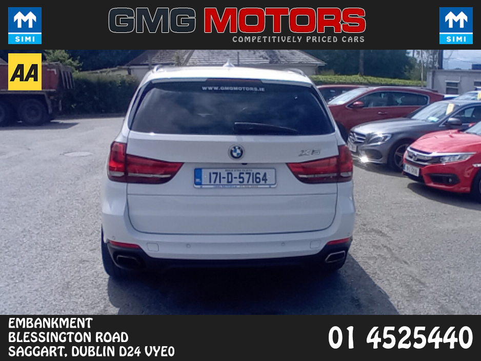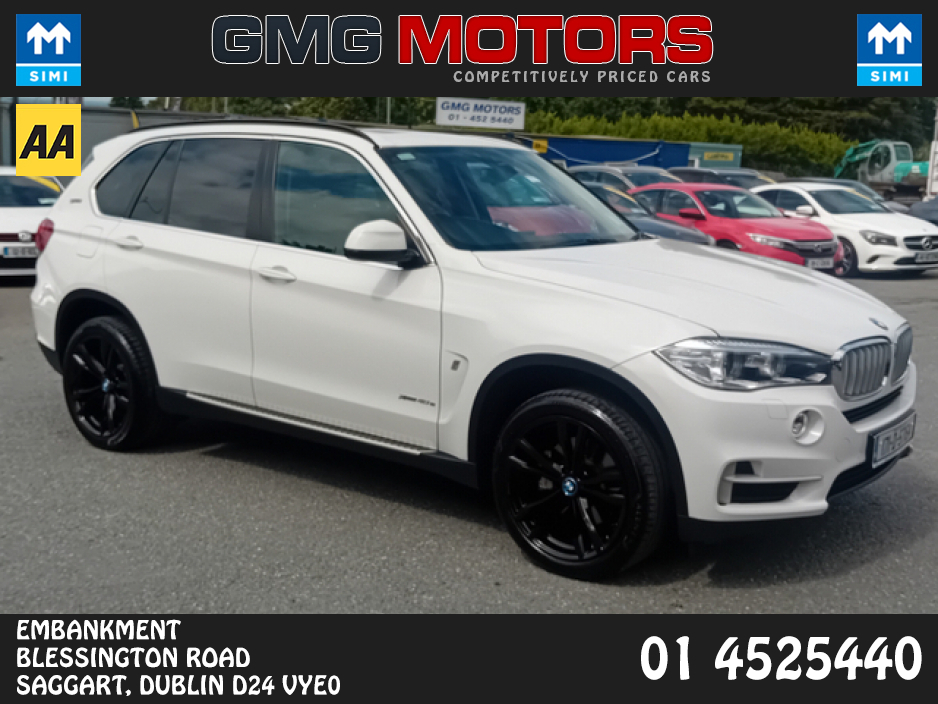 WELCOME TO GMG MOTORS FULLY APPROVED AA AND SIMI GARAGE. THIS STUNNING BMW X5 COMES FULLY SERVICED, FULLY VALETED AND WITH WARRANTY. CONTACT SALES ON 01-4525440. OPENING HOURS MONDAY-FRIDAY 9.00-6.00 ... PM SATURDAY 10.00AM-1.00PM Air Conditioning, Central Locking, CD Player, Full Service History, Immaculate condition, Electric Windows, Airbag, Alarm, Alloy Wheels, Cruise Control, Electric Mirrors, Electric Seats, Fog Lamps, Immobiliser, Full Leather, Privacy Glass, Heated Seats, Automatic Lights, Centre Armrest, Multi-function steering wheel, Roof Rails, Climate Control, Satellite Navigation, Traction Control, Metallic Paint, Multiple Air Bags, Anti-Theft System, Parking Sensors, 3 Month Warranty, 12 Month Warranty, Bluetooth, Remote Central Locking, EBD, Electronic handbrake, Folding rear seats, Isofix, Roadside assistance, History Checked, Finance Checked, Panoramic Sunroof, Heated Front Seats, Front Parking Sensors, Active Safety Braking / City Brake / Collision Alert, Adaptive Cruise Control, Stop/Start Button, Touch Screen Media Control, Driver Fatigue Warning, Dual Zone Climate Control, Daytime Running Lights, External Devices Connectivity, Cup holders, Remote boot/hatch/rear door release, Stability control