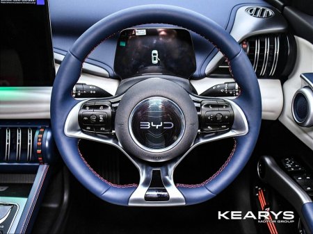 The BYD ATTO 3's interior is uniquely styled, featuring a completely flat floor, dynamic central console, vegan leather sports seats, and a rotatable touchscreen. The panoramic sliding glass roof with an adjustable shade adds a touch of luxury, providing a sophisticated yet fun environment for both driver and passengers. With a 150kW motor, the car accelerates from 0-100km/h in just 7.3 seconds and boasts an impressive range of up to 565KM (City) and 420KM (Combined).