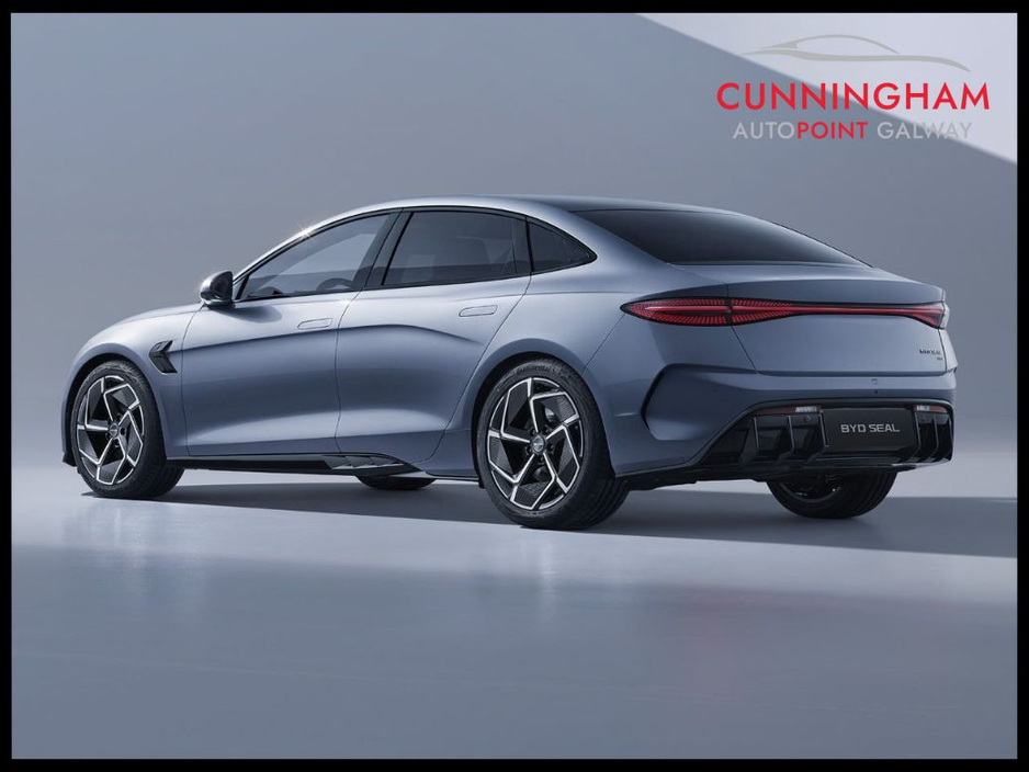 The Seal Design comes with an unrivalled level of standard specification with features including Panoramic roof - Adaptive Cruise Control (ACC) & Intelligent Cruise Control (ICC) with Intelligent Speed Limit Information and Control - Traffic Jam Assist - Rotatable 15.6-inch Intelligent central touchscreen - 12-speaker Dynaudio Audio sound system - Apple Carplay and Android Auto - 10 years free cloud service with 1GB data for infotainment per month for free in first 2 years - Dual wireless phone charging pads - Front and rear USB Type-A (18W) and Type-C (60W) charging ports - Keyless system entry - 360 degree cameras - Front and rear parking radar sensors - Front sports seats with ventilation, heating, position memory & integrated headrest - 8-way electrically adjustable drivers seat with electric lumbar support adjustment - 6-way electrically adjustable passenger seat - Dual zone automatic air conditioning with PM2.5 air filter - Negative-ion generator - Predictive Collision Warning - Forward Collision Warning - Automatic Emergency Braking - Rear Collision Warning - Front Cross Traffic Alert with front cross traffic braking - Rear Cross Traffic Alert with rear cross traffic braking - Traffic Sign Recognition - Lane Departure Assistant and Lane Departure Warning - Emergency Lane Keeping Assist - Electric tailgate - 19-inch twin colour aluminium alloy wheels - LED headlights with High beam assist - Thermal insulated privacy glass - Remote climate control - Exterior mirrors with electric defrosting, reverse auto-tilt, electric folding, position memory, blind spot indicator and puddle and foot lights - Drilled and ventilated front and ventilated rear brake discs - Integrated sport seats, heated and ventilated - Leather, multi-function and heated steering wheel - 10.25-inch LCD main dashboard display - Front & rear centre armrest - Split folding rear seats (60:40) - Multi-colour ambient interior lighting - Automatic anti-glare interior rear-view mirror - Electronic child safety locks - ISOFIX on outer rear seats and front pass seat - Driver Attention Warning - Alcohol Detection System (ADS) - Child Forgetting Detection (CFD) - Software Over-the-Air (OTA) functions - 11kW AC charging power - 150kW DC charging power.