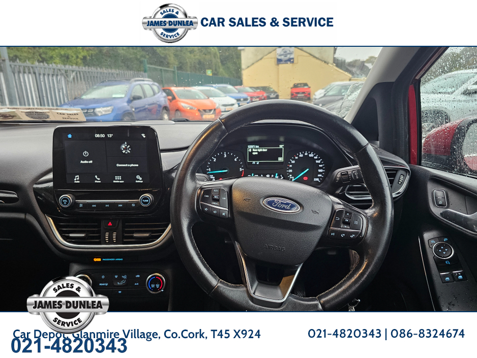 ONE OWNER IRISH CAR WITH FULL FORD SERVICE HISTORY..COMES WITH AIRCON..CRUISE CONTROL..BLUETOOTH PHONE..LEATHER MULTI FUNCTION STEERING WHEEL..REVERSING SENSORS..TOUCH SCREEN RADIO WITH ANDROID AUTO A ... ND APPLE CAR PLAY..SAT NAV..ELECTRIC WINDOWS AND FOLDING MIRRORS...FRONT COLLISION ALERT...FRONT FOGLIGHTS..LED DAYTIME RUNNING LIGHTS...AUTO HEADLIGHTS..PRIVACY GLASS..ALLOY WHEELS..FULLY SERVICED....NEW 2 YEAR NCT 2028..3 MONTHS WARRANTY AND FINANCE AVAILABLE Central Locking, Electric Windows, Airbag, Fog Lamps, Rear Spoiler, Multi-function steering wheel, Traction Control, Metallic Paint, Anti-Theft System, Bluetooth, EBD, Isofix, Active Safety Braking / City Brake / Collision Alert, Stop/Start Button, External Devices Connectivity, Cup holders, Stability control