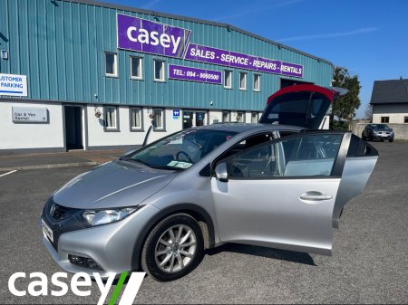 Lovely Honda Civic in fantastic condition. Beautiful engine and very economical. Low road tax and two keys. Trade ins welcome. Call Kenneth or Liam on 094 9060500. Caseys selling quality cars for over ... 45 years!! Air Conditioning, Central Locking, Immaculate condition, Electric Windows, Airbag, Alarm, Alloy Wheels, Cruise Control, Electric Mirrors, Fog Lamps, Immobiliser, Centre Armrest, Multi-function steering wheel, Climate Control, Traction Control, Metallic Paint, Anti-Theft System, Parking Sensors, Bluetooth, Remote Central Locking, EBD, Six speed transmission, Isofix, History Checked, Finance Checked, Active Safety Braking / City Brake / Collision Alert, Stop/Start Button, 2 Keys, External Devices Connectivity, Cup holders, Remote boot/hatch/rear door release, Stability control