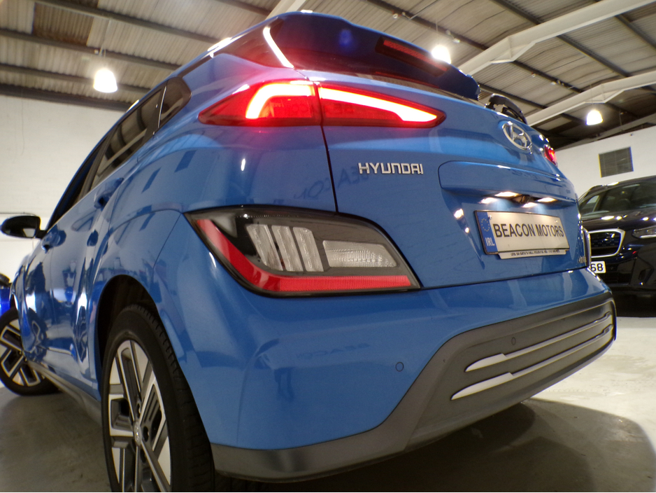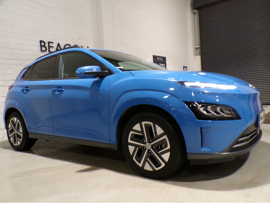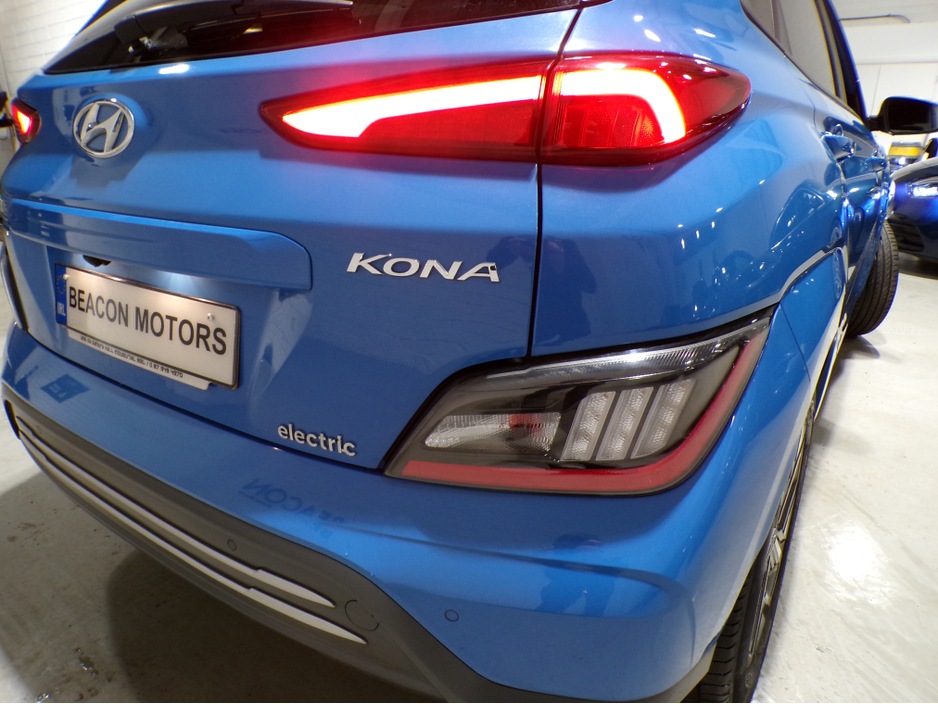 **MOTOR FINANCE ARRANGED CALL TODAY** WELCOME TO BEACON MOTORS. JUST IN AND NEW TO OUR STOCK IS THIS STUNNING 1 OWNER*64KWH HYUNDAI KONA PREMIUM EV*484KM RANGE AUTOMATIC TRANSMISSION. THIS HYUNDAI COMES WITH A FULL MAIN DEALER HISTORY FROM NEW. MILEAGE IS ONLY 41,000 MILES FROM NEW. THIS CAR ALSO COMES WITH A HOST OF EXTRAS AND IS PRIME EXAMPLE OF A WELL MAINTAINED AND CARED FOR CAR. OPEN MON-FRI 9 AM TILL 6.30 PM AND SAT 9 AM TILL 3 PM // EVENING AND SUNDAY VIEWINGS AVAILABLE BY APPOINTMENT ONLY // TRADE INS ACCEPTED // PLEASE CALL US TODAY TO ARRANGE A VIEWING AND TEST DRIVE ON 01-8429439 OR 087-9494970 THANKS Air Conditioning, Central Locking, Immaculate condition, Electric Windows, Airbag, Alarm, Alloy Wheels, Cruise Control, Electric Mirrors, Fog Lamps, Immobiliser, Rear Spoiler, Heated Seats, Automatic Wipers, Automatic Lights, Centre Armrest, Luggage Cover, Multi-function steering wheel, Roof Rails, Climate Control, Satellite Navigation, Traction Control, Multiple Air Bags, Xenon Lights, Anti-Theft System, Parking Sensors, Trade in accepted, Bluetooth, Remote Central Locking, Electronic handbrake, Folding rear seats, Isofix, Hill holder, Roadside assistance, History Checked, Finance Checked, Apple Car Play, Android Auto, Mirror Link, Keyless Entry, Heated Front Seats, Reversing Camera, Front Parking Sensors, Lane Departure Warning, Blind Spot Monitoring System, Wireless Smartphone Control, Electro Chrome Rear View Mirror, Speed Sign Recognition & Recommendation, Active Safety Braking / City Brake / Collision Alert, Heated Steering Wheel, Adaptive Cruise Control, Stop/Start Button, Touch Screen Media Control, Drive Mode Selector, Dual Zone Climate Control, Daytime Running Lights, Manufacturer Warranty Remaining, 2 Keys, Main Dealer Service History, External Devices Connectivity, Cup holders, Remote boot/hatch/rear door release, Stability control