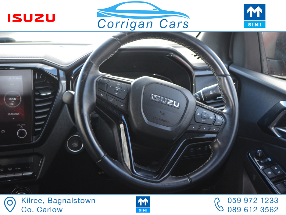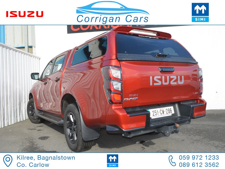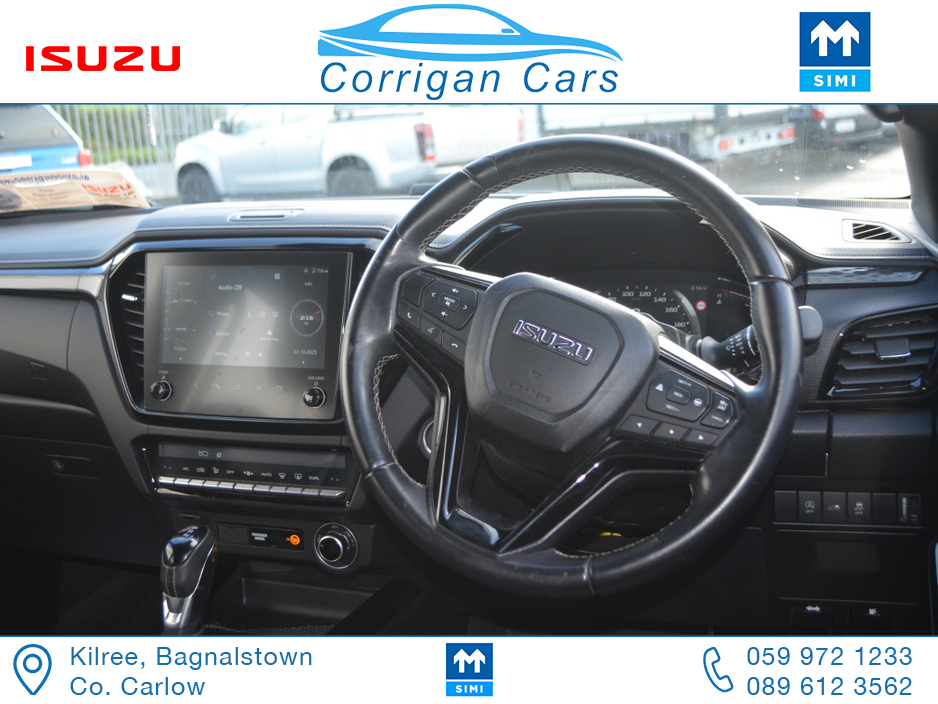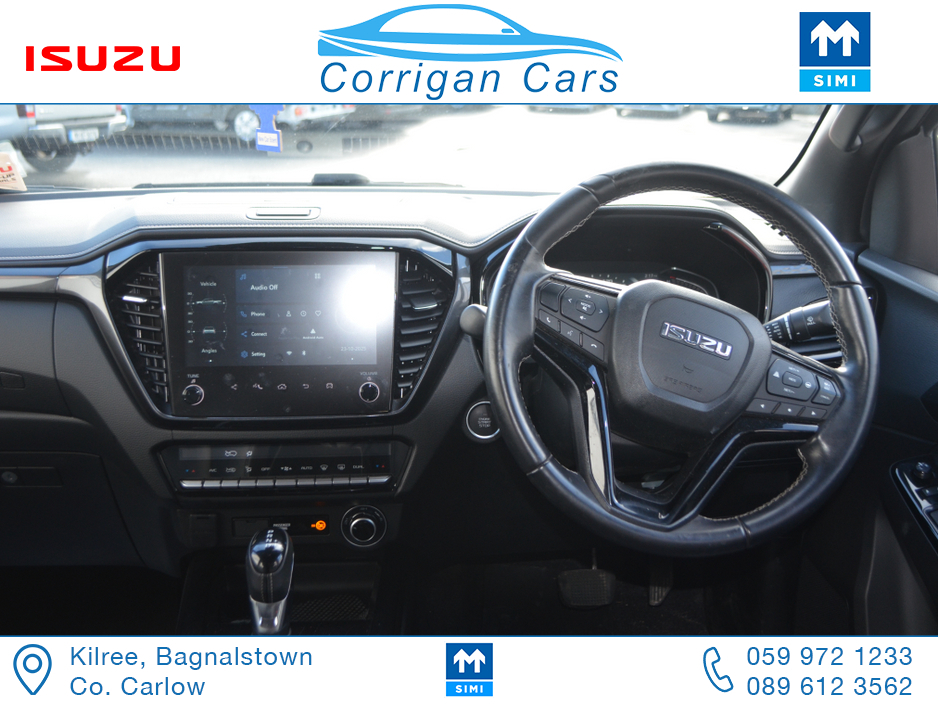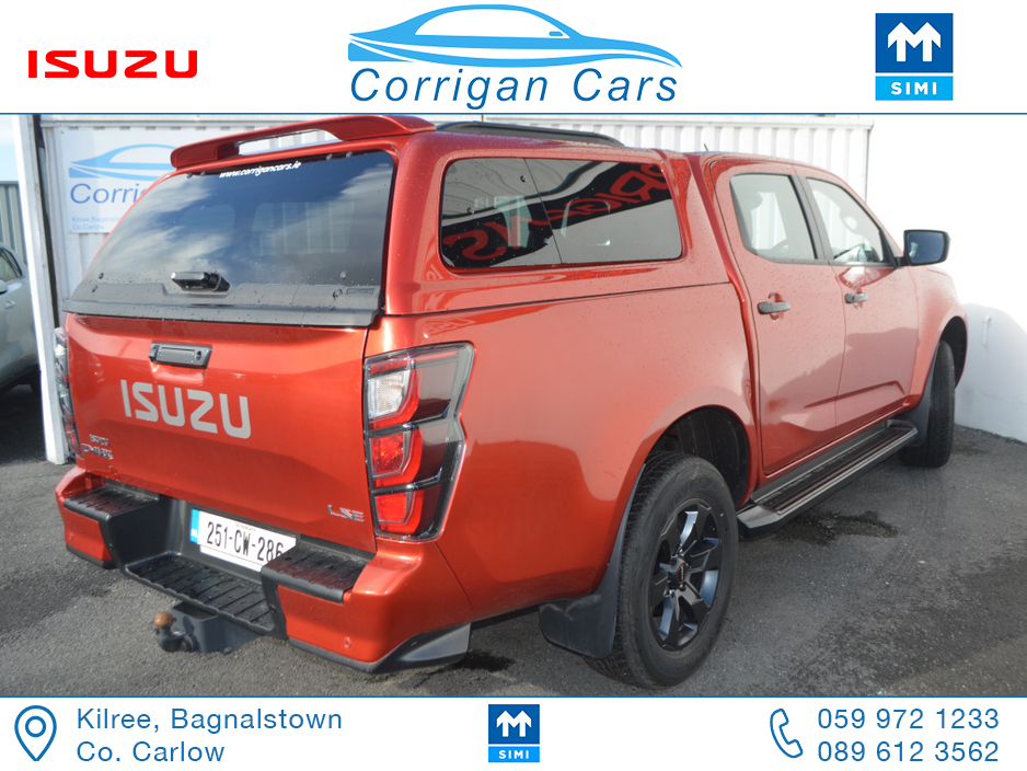 This jeep new retails at €62,500 so this jeep is a bargain at €53,995 including vat with only 8700kms and 4 years Isuzu Warranty. PRICE EXCLUDING VAT €43,898- New into Corrigancars is this Stunn ... ing LSE D-Max Presented in Namibu red, super spec on this jeep including Air Con, Bluetooth, Heated Leather Seats, Reverse Camera, Apple Carplay, Blind Spot monitoring, Lane Departure warning and lots lots more. Lo rate finance available in house on this jeep with a vat deposit and trade ins most welcome. All our commercial Vehicles are sold fully serviced, DOE Tested, History Checked and with a comprehensive warranty. For more details or to arrange a test drive please Willie on 086 8376909 landline 059 9721233 or email sales@corrigancars.ie Central Locking, Electric Windows, Airbag, Cruise Control, Fog Lamps, Privacy Glass, Centre Armrest, Multi-function steering wheel, Traction Control, Parking Sensors, Bluetooth, Isofix, Apple Car Play, Android Auto, Active Safety Braking / City Brake / Collision Alert, Stop/Start Button, External Devices Connectivity, Cup holders, Stability control, Air Conditioning, Air bags, Anti theft system, Bluetooth, Central locking, Cruise control, Electric windows, Fog lights, Multi Function Steering Wheel Controls, Parking Sensors, Power steering, Roof Rails, Traction control (ASR)