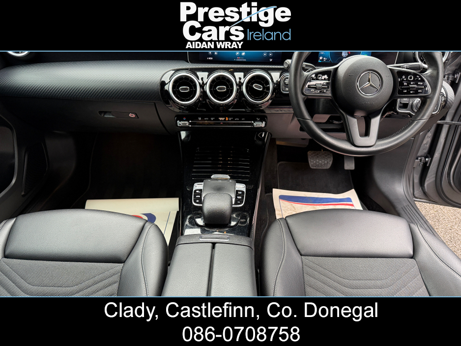 2019 (191) MERCEDES-BENZ A180 1.5 DIESEL SE EXECUTIVE AUTOMATIC 5DR HATCHBACK 115 BHP, **NIGHT EDITION STYLING**, 120,000 MOTORWAY MILES WITH A FULL MERCEDES MAIN DEALER SERVICE HISTORY, ONE COMPANY OWNER FROM NEW, GLOSS BLACK FRONT SPLITTER,BOOT SPOILER,AMG UP-GRADED GRILL, HALF LEATHER INTERIOR WITH WHITE STITCHING, HEATED SEATS, SEAT COMFORT PACK, MIRROR PACKAGE, BIG TOUCH SCREEN COLOUR DISPLAY SAT-NAV, ON-BOARD COMPUTER, MULTI FUNCTIONAL STEERING WHEEL, IPOD/USB CONNECTION, REAR USB PORTS, BLUETOOTH, APPLE CAR PLAY, MERCEDES-BENZ SOUND SYSTEM, ELECTRIC FOLDING DOOR MIRRORS, HEATED WINDSCREEN WASHER JETS, BRAND NEW 19" ALLOY WHEELS,OPTIONAL EXTRA @ 800 STG, LED FRONT AND REAR LIGHTS, DAYTIME LED RUNNING LIGHTS, LIGHT AND SIGHT PACK, REAR PRIVACY GLASS, ACTIVE PARK ASSIST WITH PARKTRONIC SYSTEM, FRONT AND REAR PARK SENSORS WITH PARK DISTANCE CONTROL, 180 DEGREE REAR VIEW CAMERA WITH PARKING GUIDELINES, FINISHED IN STUNNING MOUNTAIN GREY, AUTOMATIC GEARBOX WITH F1 PADDLES, 2 KEYS AVAILABLE AND ALL PAPERWORK PRESENT, SHOWROOM CONDITION INSIDE AND OUT. ANY INSPECTION WELCOME. EXCELLENT VALUE