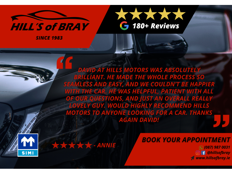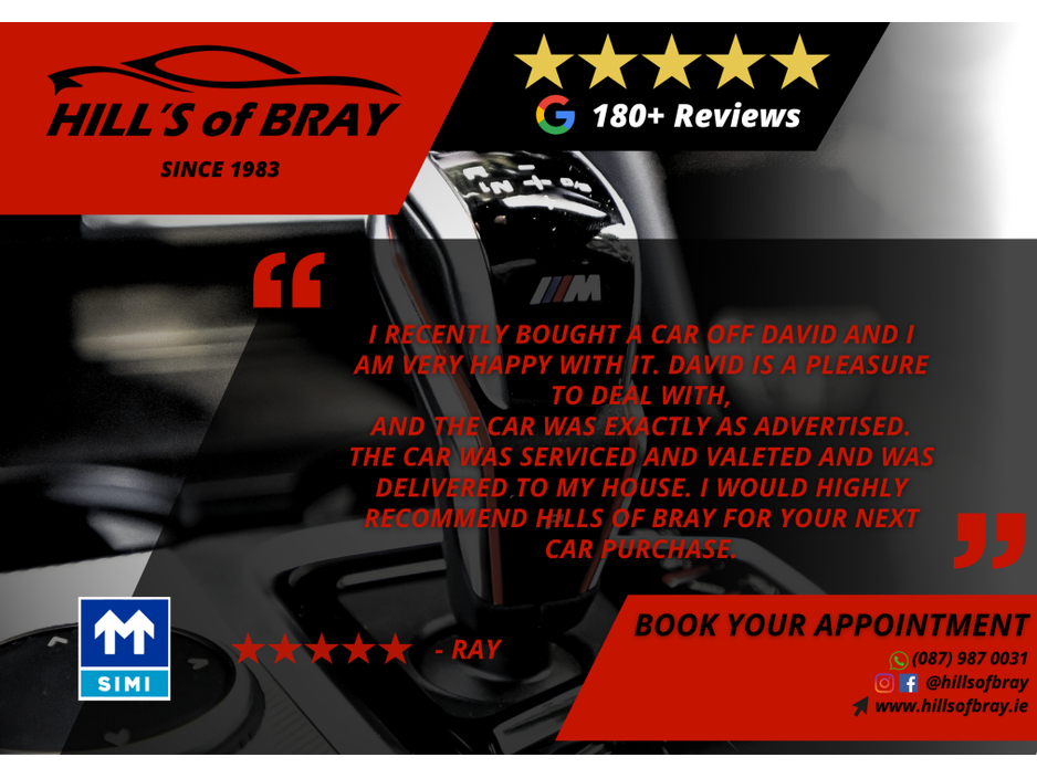 Why not check out our Google reviews? Air Conditioning, Central Locking, CD Player, Electric Windows, Airbag, Alarm, Alloy Wheels, Cruise Control, Electric Seats, Leather Upholstery, Full Leather, Automatic Wipers, Automatic Lights, Centre Armrest, Multi-function steering wheel, Climate Control, Traction Control, Metallic Paint, Multiple Air Bags, Anti-Theft System, Parking Sensors, 12 Month Warranty, Bluetooth, EBD, Isofix, Hill holder, Active Safety Braking / City Brake / Collision Alert, Stop/Start Button, Dual Zone Climate Control, Daytime Running Lights, 2 Keys, External Devices Connectivity, Cup holders, Remote boot/hatch/rear door release, Stability control