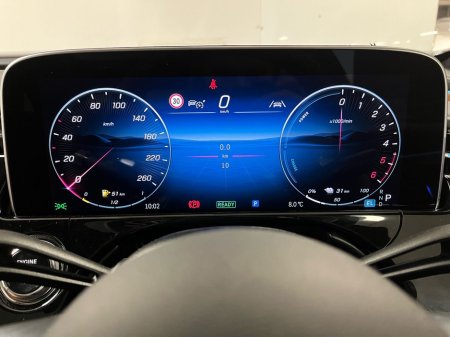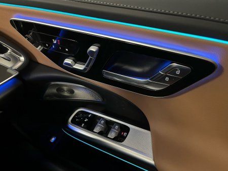AMG Line exterior with the Night Package delivers a sporty, premium presence, enhanced by 20-inch AMG multi-spoke wheels and darkened glass. Inside, the cabin features heated front seats with memory, leather-clad dashboard, piano black wood trim, a Supersport steering wheel, premium ambient lighting, and a panoramic sunroof. The impressive tech suite includes the large MBUX central display, front passenger display, MBUX Navigation Premium, Apple CarPlay, Android Auto, wireless charging, premium sound system, head-up display, augmented reality navigation and 360° camera. Safety and driver assistance are extensive, offering DISTRONIC Pro adaptive cruise, Active Lane Keeping Assist, Blind Spot Monitoring, PRE-SAFE features, speed sign recognition, and Digital LED headlamps with projection functions. As a plug-in hybrid, the E 300 de adds AC charging up to 11 kW, Mode 2 and Mode 3 charging cables, and hybrid-specific functions through Mercedes-Benz Connect. This highly equipped model blends luxury, technology and efficiency in an outstanding package.