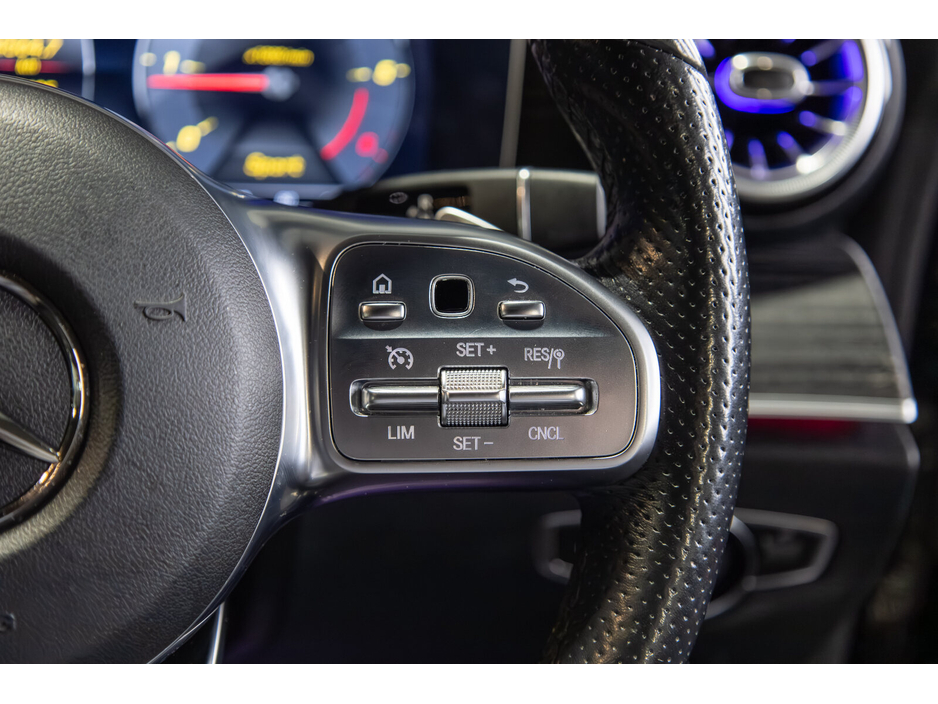 Air conditioning, Climate control, Dual zone climate control, Armrest, Keyless entry, Electrically adjustable seats, Electric side mirrors, Electric windows, Electric handbrake, Heated seats, Lumbar support, Multi-function steering wheel, Rain sensor, Gear shift paddles, Bluetooth, 12v power outlet, Radio, USB connection (front), Cruise control, Hill hold assist, Navigation system, Self-steering parking, Parking camera, Front parking sensors, Rear parking sensors, Remote boot release, Speed limiter, Start-stop system, Traffic sign recognition, Voice control, Parking assistance, Alloy wheels, Leather interior, Leather steering wheel, Adaptive headlights, Ambient lighting, Auto lights (dusk sensor), Daytime running lights, Fog lights, High beam assist, LED headlights, ABS, Anti collision system, Emergency brake assist, Central locking, Remote central locking, Driver-side airbag, Immobilizer, Isofix, Tyre pressure monitor, Passenger-side airbag, Seat belt warning, Side airbag, Stability control, Traction control, Emergency tyre repair kit