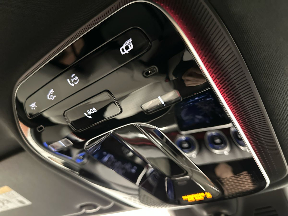 Grey Artico interior with leather-clad dashboard, AMG floor mats, chrome accents and black fabric headliner