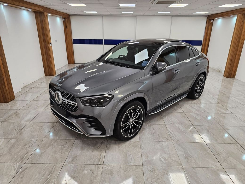 THIS IS A 241 REGISTERED MERCEDES GLE400 AMG PREMIUM PLUS COUPE SELENITE GREY METALLIC WITH BLACK NAPPA LEATHER INTERIOR AND A DARK WOOD FINISH