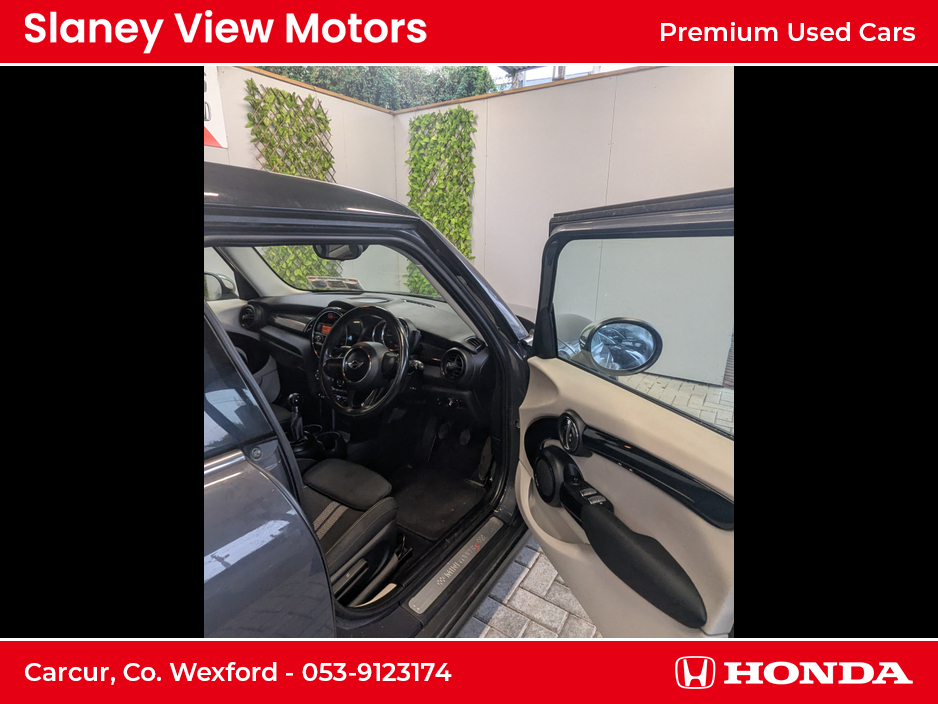 ffers efficient fuel consumption and lively acceleration. The grey exterior gives it a sleek, modern appearance, complemented by its classic Mini design elements. Inside, it features a comfortable and well-appointed interior with modern tech and premium materials. Its five-door configuration provides convenient access and practicality, making it an ideal choice for city driving and everyday use.