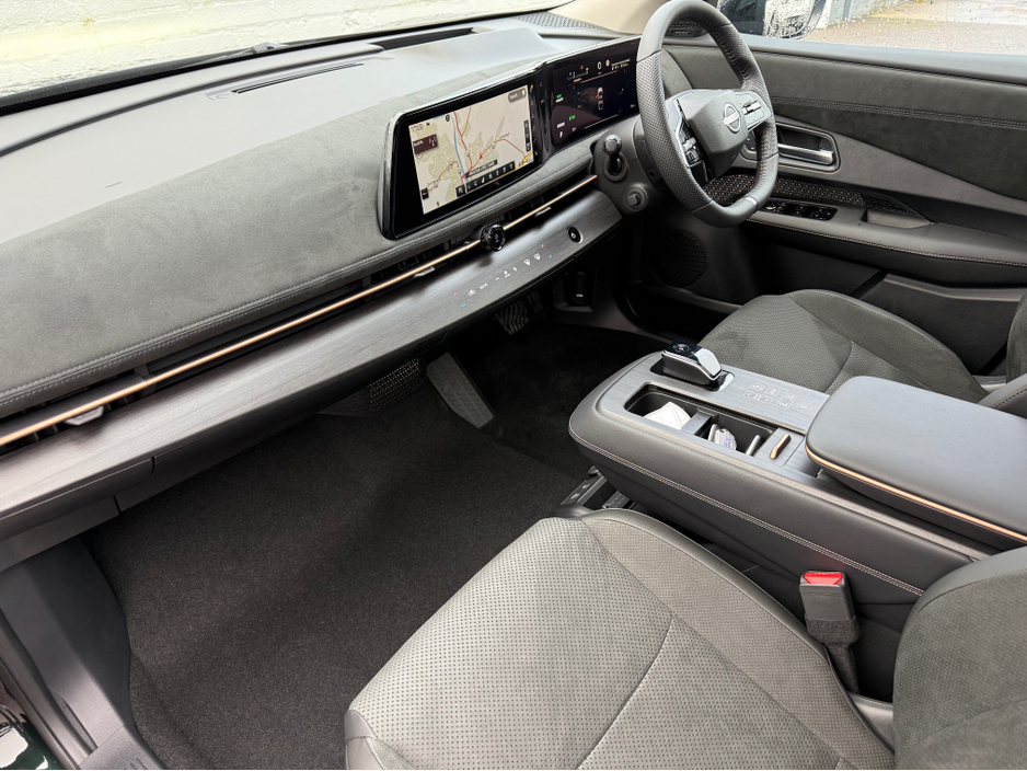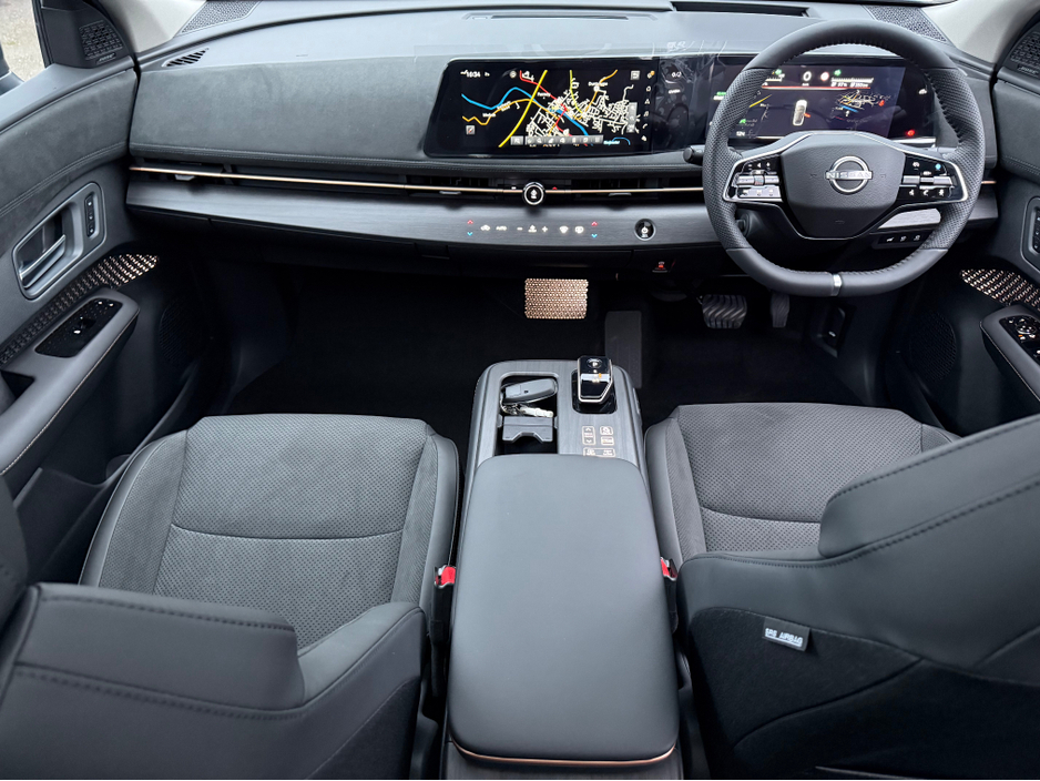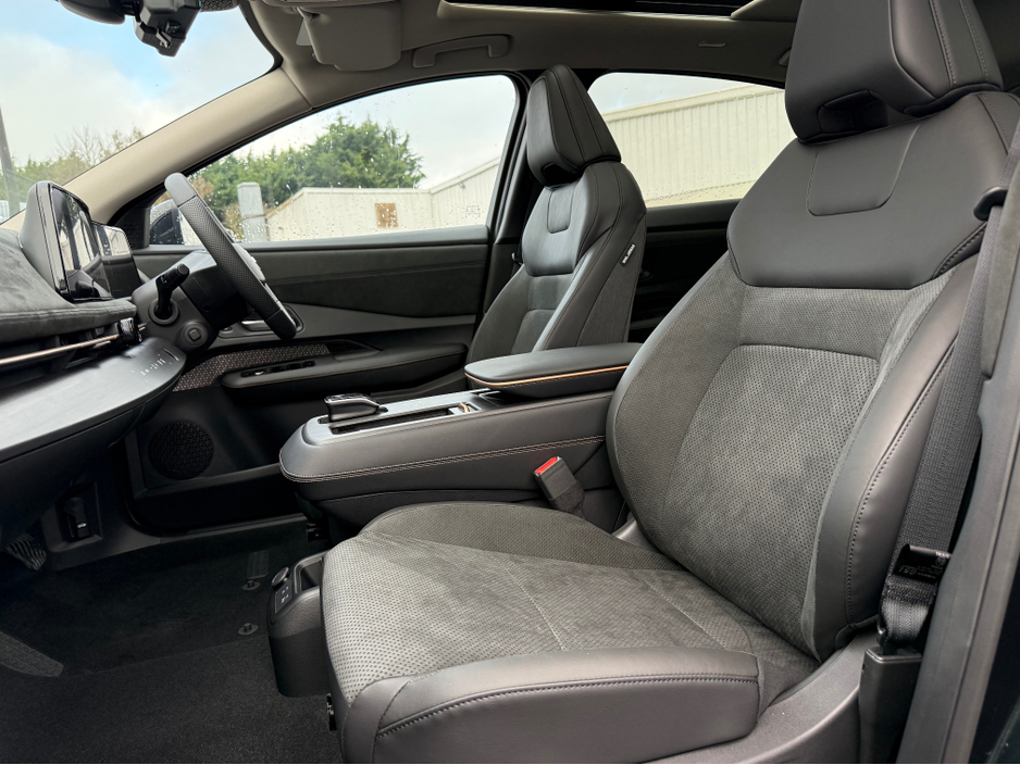 * EVOLVE spec includes adaptive sequential lights , openable sunroof , 10 speaker BOSE system , heated & cooled front seats , power sliding centre console , head up display , intelligent rear view mirror , Leather & Alcantara seats , Pro Pilot & Pro Pilot Park , Power tailgate , Dual 12.3" TFT Screens with Meter Display & Navigation . Wireless Apple Car Play , Android Auto , Nissan Connect Services , Wireless Phone Charger , Intelligent 360 Around View Monitor , Memory Intelligent Key ,