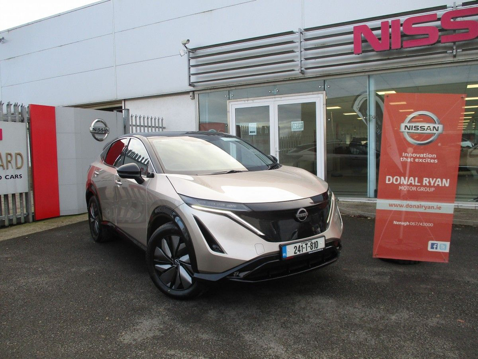 The amazing Nissan Ariya available to order now. 3 years manufacturer warranty with RAC roadside assistance and 8 years battery warranty. Up to 400 km range. Features include front & rear parking sens ... ors, around view monitor, intelligent cruise control, blind spot warning with intelligent blind spot intervention, intelligent emergency braking with pedestrian & cyclist detection & junction assist, intelligent forward collision warning, PROPILOT with Navilink, e-Pedal step, traffic jam pilot, heated front windscreen, intelligent lane intervention, lane keep assist, rear emergency braking and cross traffic alert, heat pump, 2 charging cables, 7.4KW onboard charger, leather heated steering wheel, Apple CarPlay/Android Auto, Nissan Connect Services and many, many more. All our quality used vehicles go through an extensive Vehicle Health Check, come fully serviced, tested, valeted and sanitised. Trade ins are welcome. Please call us for trade in valuation or to arrange a test drive. Price quoted after SEAI grant.