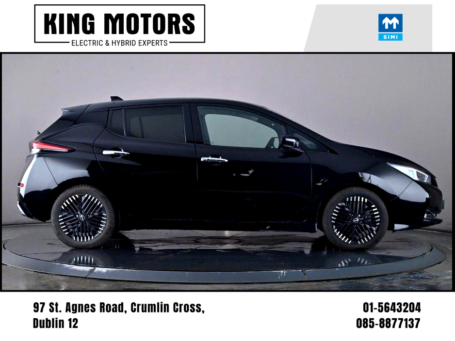 oid auto, Sat-Nav, Adaptive Cruise control, half leather upholstery, parking sensors - see full spec list at bottom of this Ad. One owner from new. BALANCE OF NISSAN 8 YEAR BATTERY MANUFACTURERS WARRANTY APPLIES. Comes fully valeted, serviced and warrantied, and with a full cartell history check to ensure your peace of mind. ALL PRICES QUOTED ARE INCLUSIVE OF ANY APPLICABLE VRT. FINANCE OPTIONS AVAILABLE, INCLUDING OPTIONS FOR THOSE WITH POOR, OR NO CREDIT HISTORY. APPLY AT kingmotors.ie/finance.php SIMI Members. Over 20 years motor trade experience. Open Mon-Fri 10.00-5.30, Sat 10.00-2.00 pm