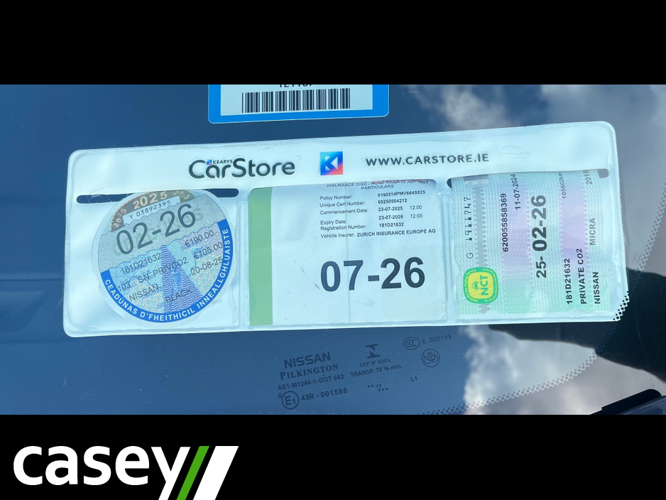 Lovely Nissan Micra in excellent condition. Driving perfectly. Trade ins welcome, Finance available. Call Kenneth or Liam on 094 9060500. Caseys selling quality cars for over 45 years!! Central Lockin ... g, Electric Windows, Airbag, Rear Spoiler, Centre Armrest, Multi-function steering wheel, Traction Control, 12 Month Warranty, Bluetooth, EBD, Isofix, Active Safety Braking / City Brake / Collision Alert, Stop/Start Button, 2 Keys, External Devices Connectivity, Cup holders, Stability control