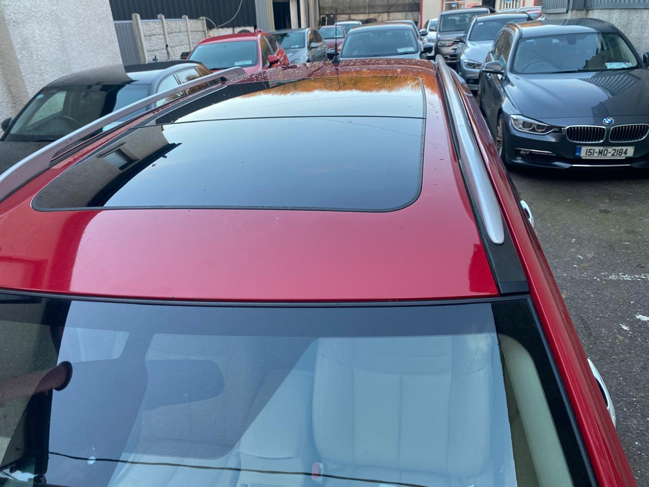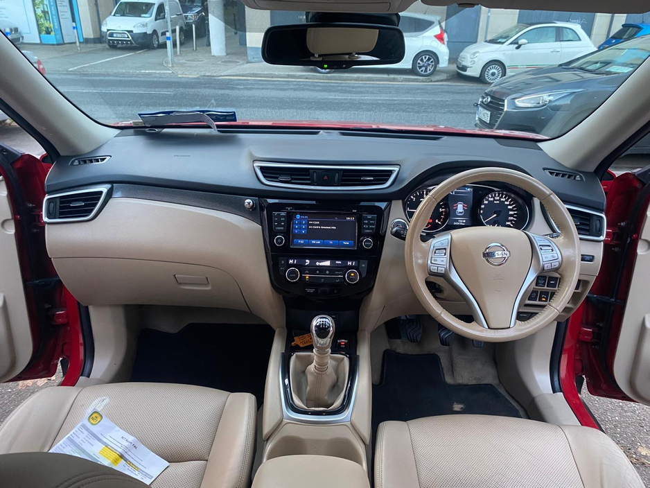 This is a very high spec Nissan Xtrail with a very nice colour combination of red and beige. This jeep comes with a cream leather interior, armrests , very large storage compartments, cup holders in t ... he front and back, factory tinted windows, sat navigation, air conditioning, heated seats, all around camera system back front and sides, panoramic sunroof, parking sensors front and back, electric seats electric folding mirrors, electric windows back and front, leather stitched multi function wheel, keyless entry, push button boot closure, Bluetooth, lane assist, cruise control, alloy wheels, fog lamps, touchscreen audio system, serviced and valeted. Also included is a new NCT. Very spacious family jeep. Trade ins welcome. Call today for a test drive! Central Locking, Electric Windows, Airbag, Fog Lamps, Sunroof, Rear Spoiler, Privacy Glass, Centre Armrest, Multi-function steering wheel, Roof Rails, Satellite Navigation, Traction Control, Metallic Paint, Anti-Theft System, Parking Sensors, Bluetooth, EBD, Isofix, Panoramic Sunroof, Active Safety Braking / City Brake / Collision Alert, Stop/Start Button, External Devices Connectivity, Cup holders, Remote boot/hatch/rear door release, Stability control