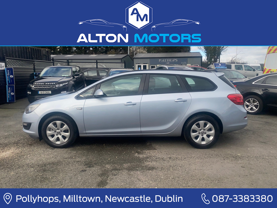 SUPERB OPEL ASTRA TOURER 1.6CDTI. **3 MONTH WARRANTY** **NATION WIDE DELIVERY** FEATURES INCLUDE **CRUISE CONTROL **BLUETOOTH PHONE **AIR CON **AUTO START/STOP **CLIMATE CONTROL **NEW TIMING CHAIN FIT ... TED **ELECTRIC WINDOWS AND MIRRORS **MULTI FUNCTION STEERING WHEEL AND MUCH MORE. FOR FURTHER INFORMATION OR TO ARRANGE A TEST DRIVE YOU CAN CONTACT OUR SALES TEAM ON 087-1627774/ 087-3383380 OR BY EMAIL AT SALES@ALTONMOTORS.IE Air Conditioning, Central Locking, Electric Windows, Fog Lamps, Rear Spoiler, Centre Armrest, Multi-function steering wheel, Roof Rails, Traction Control, Metallic Paint, Bluetooth, EBD, Isofix, Active Safety Braking / City Brake / Collision Alert, Stop/Start Button