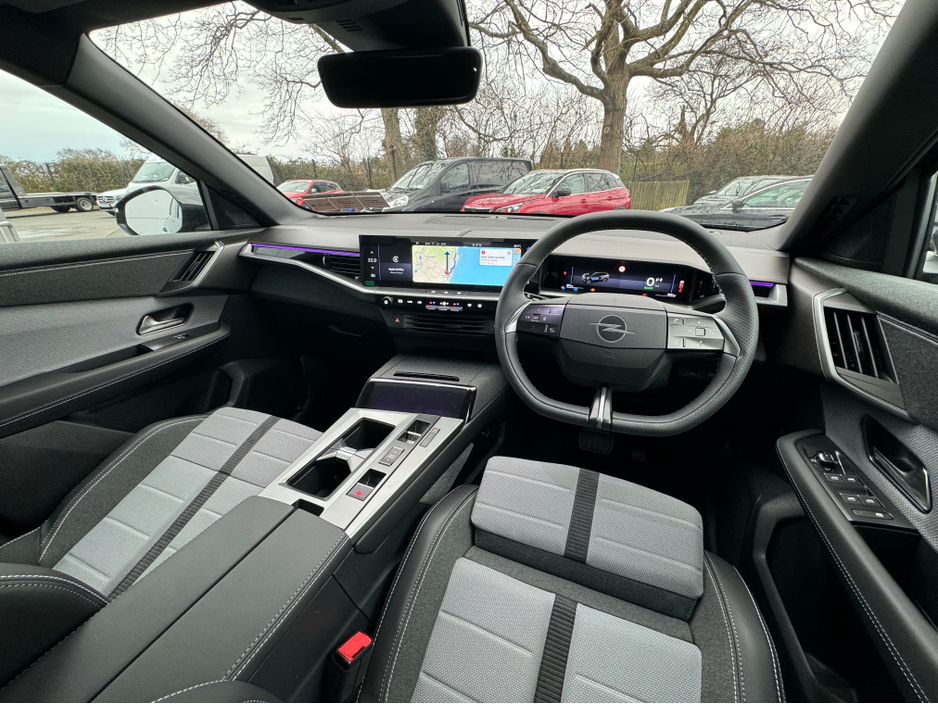 The All-New Opel Grandland Electric GS in Carbon Black. Powered by a 73KwH battery, it produces 210PS. It features 19" diamond-cut alloy wheels, heated steering wheel, front and rear seats, a 16" info ...
