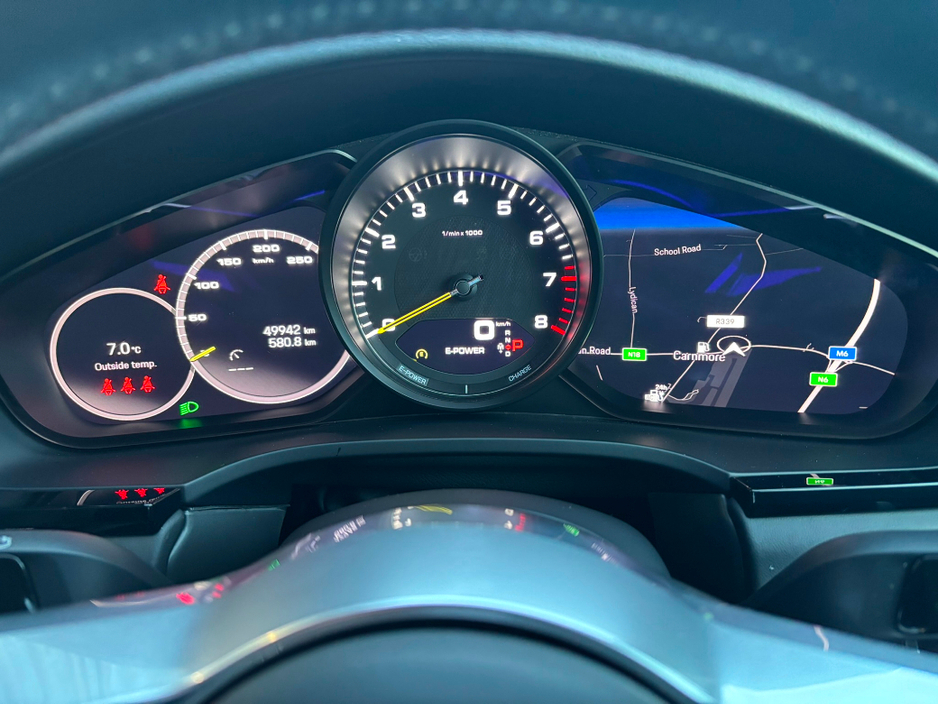Standard features include 8-Speed Tiptronic S Automatic Transmission - 3.6 kW Onboard Charger - ParkAssist including reversing camera - Seat heating (front) - Emergency Assist (EA) - Navigation module for PCM - Door sill guards in aluminium with model designation - Sport Chrono Package - Apple CarPlay - Side window trims in Black (high-gloss) - Compass / Sport Chrono instrument dial in Crayon - Preparation for towbar system - VTS Security Package inc Alarm and Tracker (subject to subscription).