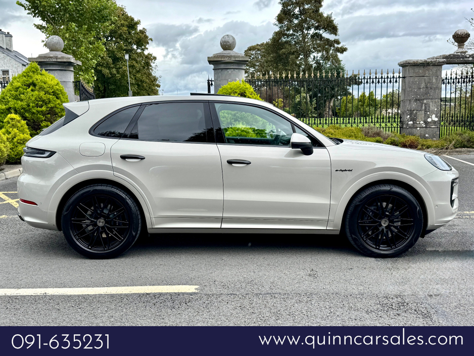 2025 (251) PORSCHE CAYENNE 3.0 V6 470 BHP AWD E-HYBRID AUTO...CASHMERE BEIGE METALLIC...FULL BLACK UPGRADED SMOOTH NAPPA LEATHER WITH BLACK TRIM AND BLACK CARPETS...INTERIOR TRIM IN DEEP BRUSHED ALUMI ... NIUM...21 INCH UPGRADED RS SPYDER DESIGN WHEELS IN SATIN BLACK WITH EXTENDED ARCHES IN EXTERIOR COLOUR...FULL PORSCHE SPORTS DESIGN KIT IN HIGH GLOSS BLACK...EXTERIOR MIRROR PAINTED IN HIGH GLOSS BLACK...PORSCHE LOGO PAINTED IN HIGH GLOSS BLACK AND MODEL DESIGNATION IN HIGH GLOSS BLACK...UPGRADED SPORTS TAILPIPES IN BLACK...PORSCHE ADAPTIVE AIR SUSPENSION...WINDOW TRIMS IN HIGH GLOSS BLACK...ROOF RAILS IN HIGH GLOSS BLACK ALUMINIUM....PORSCHE COMFORT ACCESS SYSTEM...FULL PANORAMIC GLASS SUNROOF...SOFT CLOSE DOORS...UPGRADED BOSE SURROUND SOUND SYSTEM...REAR PRIVACY GLASS...HD MATRIX DESIGN HEADLIGHTS....TINTED REAR LED LIGHTS WITH ANIMATION...POWER STEERING PLUS...PORSCHE ACC ADPATIVE CRUISE CONTROL...LANE CHANGE ASSIST...LANE KEEP ASSIST...BLIND SPOT MONITORING...TRAFFIC SIGN RECOGNITION...DOOR SILL GAURDS IN BRUSHED ALUMINIUM...UPGRADED AIR QUALITY SYSTEM...SPORTS CHRONO PACK WITH COMPASS DIAL IN BLACK...AMBIENT INTERIOR LIGHTING PACK...HEATED SPORTS STEERING WHEEL...PORSCHE ADAPTIVE AIR SUSPENSION...PARK ASSIST INC SURROUND VIEW CAMERAS...UPGRADED 14 WAY POWER COMFORT FRONT SPORTS SEATS WITH MEMORY PACK...HEATED FRONT AND REAR SEATS...DUAL ZONE AUTO CLIMATE CONTROL FRONT AND BACK...TWIN USB INTERFACE IN REAR...PORSCHE CREST EMBOSSED HEADRESTS FRONT...PORSCHE LOGO PUDDLE LIGHT PROJECTORS UNDER DOOR...SPORTS PEDAL PADS IN STAINLESS STEEL...PORSCHE COMMUNICATION MANAGEMENT...PCM INC ONLINE NAVIGATION SYSTEM...BLUETOOTH PHONE PREP...APPS INTERFACE...PORSCHE CONNECT PLUS...APPLE CAR PLAY...DUAL USB PORT...DAB DIGITAL RADIO...AUTO BOOTLID...KEYLESS GO...POWER CABLE FOR HOUSEHOLD OULET...11 KW AC ON BOARD CHARGER...FINANCE ARRANGED...PCP AVAILABLE...COST €144k NEW...