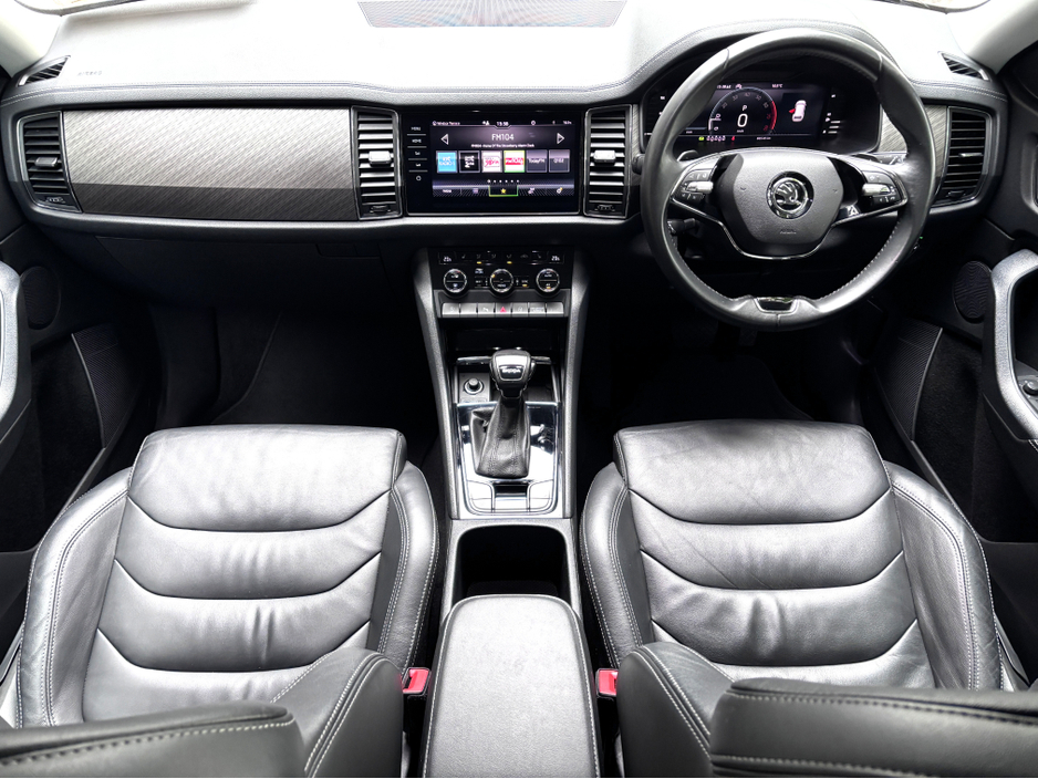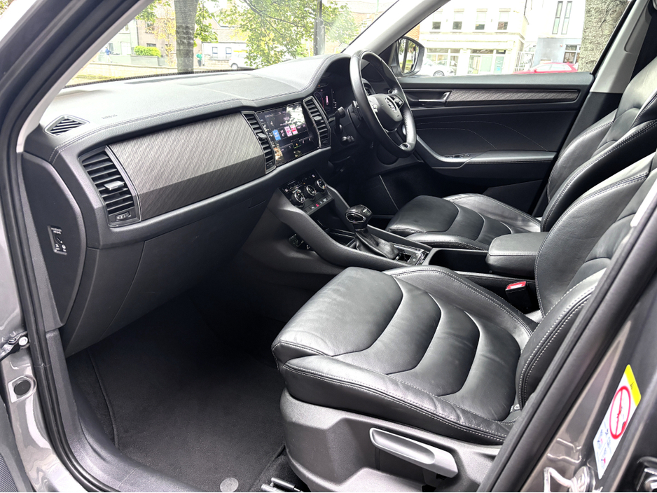 High Spec Kodiaq Petrol Auto with 7 Seats, Full Black Leather, Heated Seats, Heated Steering Wheel, 19" Alloy Wheels, Front and Rear Parking Sensors, ReversingCamera, Wireless Apple Carplay/Android Au ... to, Wireless Phone Charger, Bluetooth with Music Streaming, 3 Zone Climate Control, Adaptive Cruise Control, Keyless Entry, LED Headlights, Roofrails, Privacy Glass, Picnic Tables, and Auto Headlights and Wipers. NCT Passed Till 01/26. Road Tax €400py. Finance is available on this car at competitive rates, Please ask our sales team for a quotation. Ken Lawford Motors Est. 1991.