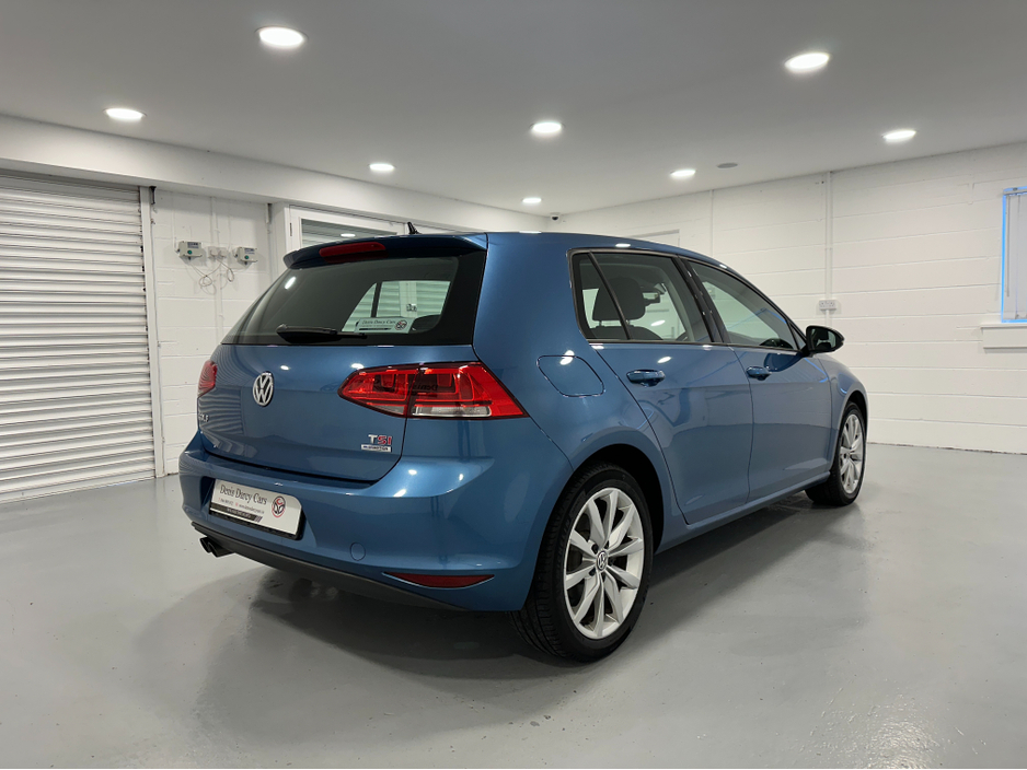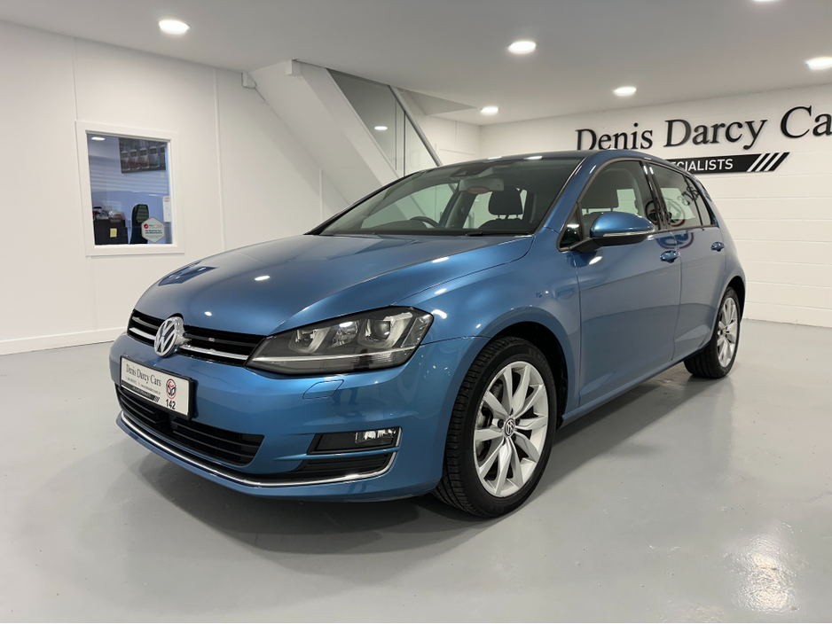 WWW.DENISDARCYCARS.IE VW/AUDI SPECIALISTS. 142 VOLKSWAGEN GOLF 1.4TSI HIGHLINE DSG IN PACIFIC BLUE, SPEC INCLUDES, 17'' ALLOYS, REMOTE LOCKING, REVERSING CAMERA, XENON LIGHTS, AUTO LIGHTS/WIPERS, ARMR ... EST, MULTIFUNCTION LEATHER STEERING WITH PADDLE SHIFT, ADAPTIVE CRUISE CONTROL,CLIMATE AC, BLUETOOTH MEDIA, LANE ASSIST, AUTO HOLD, KEYLESS, AMBIENT INTERIOR LIGHTING, TWO KEYS, SERVICE HISTORY, BLACK PIANO DASH INLAYS. COMES SERVICED AND NCT'D. WE ARE LOCATED JUST OFF THE M3 MOTORWAY EXIT 9, 20 MINS FROM DUBLIN..