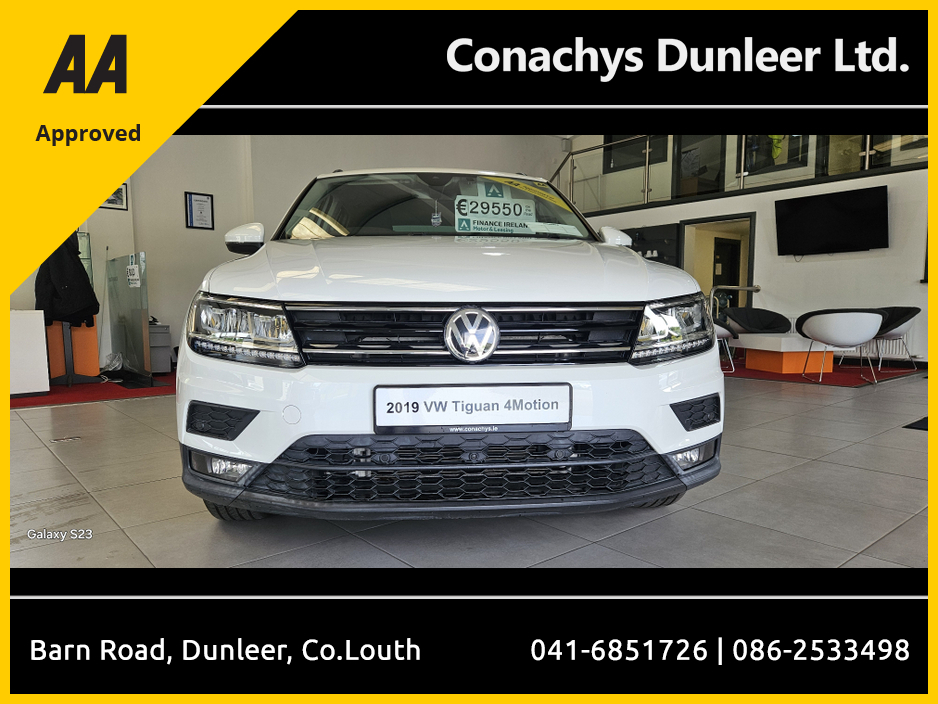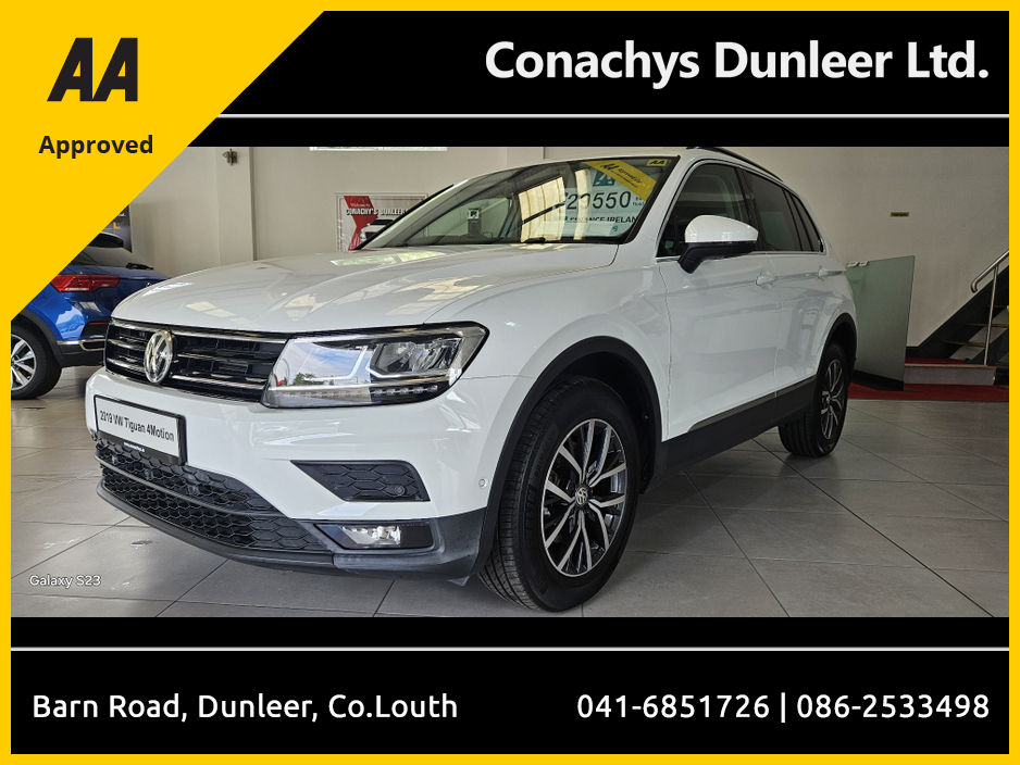 2019 Volkswagen Tiguan 2.0Tdi 4 Motion Automatic, Just into stock and awaiting Prep. Please call 0862533498 for more details Air Conditioning, Central Locking, CD Player, Immaculate condition, Electri ... c Windows, Airbag, Alloy Wheels, Cruise Control, Electric Mirrors, Fog Lamps, Immobiliser, Privacy Glass, Automatic Lights, Centre Armrest, Luggage Cover, Multi-function steering wheel, Roof Rails, Climate Control, Traction Control, Multiple Air Bags, Anti-Theft System, Parking Sensors, 12 Month Warranty, Bluetooth, Remote Central Locking, Electronic handbrake, Folding rear seats, Isofix, Hill holder, Roadside assistance, Finance Checked, Apple Car Play, Android Auto, Mirror Link, Keyless Entry, Reversing Camera, Front Parking Sensors, Wireless Smartphone Control, Stop/Start Button, Touch Screen Media Control, Drive Mode Selector, Dual Zone Climate Control, Daytime Running Lights, 2 Keys, Cup holders, Remote boot/hatch/rear door release