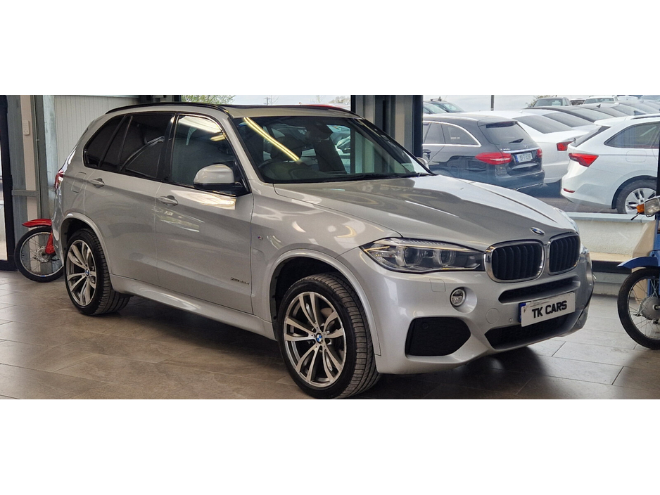 THIS X5 M-SPORT - FINISHED MACHINE SILVER METALLIC COMES WITH LOTS OF SPEC INC- ALLOYS,FOGS ,CLIMATE CONTROL,BLACK LEATHER INTERIOR W/HEATED FRONT SEATS,WIDE SCREEN INFOTAIMENT SYSTEM W/BLUETOOTH/SAT NAV,PARKING SENSORS WITH COLOUR REVERSING CAMERA, CRUISE CONTROL,PADDLE SHIFT CONTROLS,ELECTRIC WINDOWS/MIRRORS/AUTO LIGHTS/WIPERS,ELECTRIC PANORAMIC ROOF,PUDDLE LIGHTING AND PRIVACY GLASS