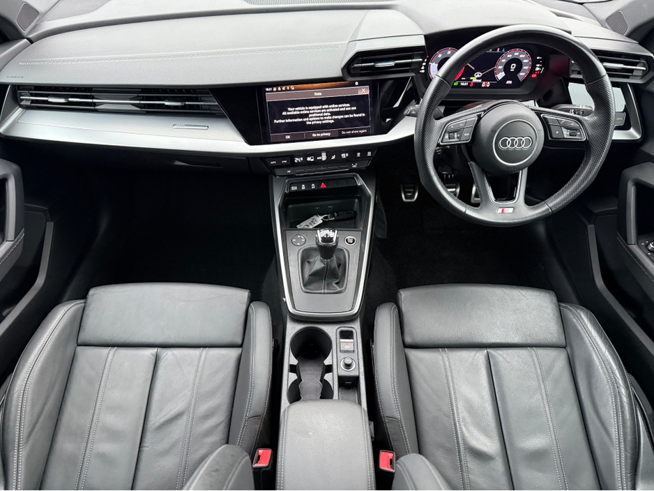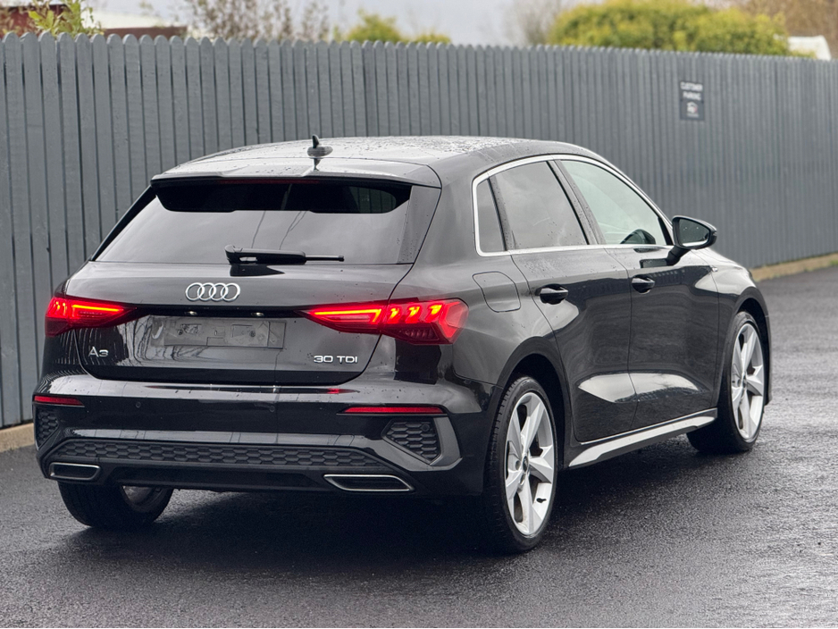 2022 Audi A3 S-Line Sportback, finished in Brilliant Black with 5 Spoke 19" Alloy Wheels. Signature Honeycomb Grill.