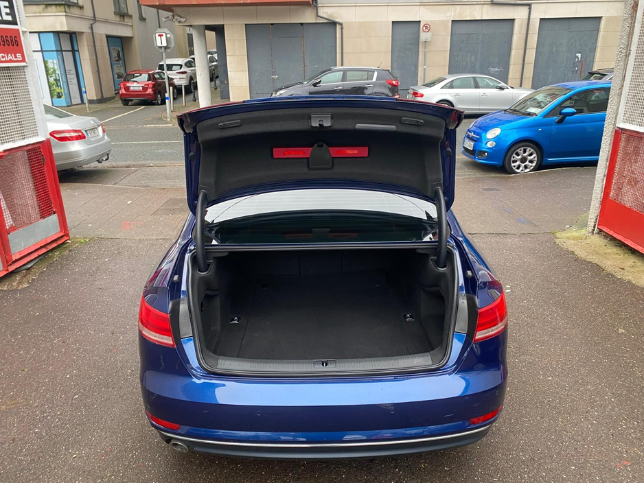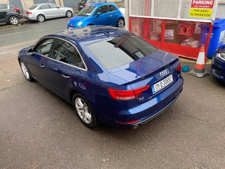 This is a lovely Audi A4 with very low mileage and in exceptional condition all round. It was very well maintained by the last owner. Car comes with multi function steering wheel, electric heated mir ... rors, electric, electric mirrors, arm rest, cup holders, leather stitched steering wheel, sat navigation, cruise control, Bluetooth, tinted windows, pop up screen, ally wheels, fog lamps, very large boot space, 2 keys, valeted and serviced. Central Locking, Electric Windows, Airbag, Centre Armrest, Multi-function steering wheel, Satellite Navigation, Traction Control, Metallic Paint, Parking Sensors, Bluetooth, EBD, Isofix, Active Safety Braking / City Brake / Collision Alert, Stop/Start Button, External Devices Connectivity, Cup holders, Remote boot/hatch/rear door release, Stability control
