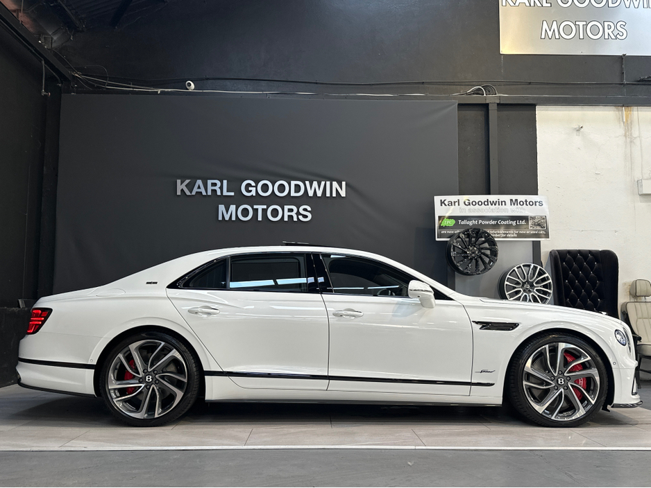 Welcome To Karl Goodwin Motors Ltd, Just Into Stock Is This Absolutely Stunning New Bentley Flying Spur 4.0 Litre V8 E-HYBRID SPEED 1ST EDITION ,Cherished Reg Number 252D800 Finished In Snow Quartz P ... earl Metallic With Full Ventilated Two Tone Ebony With Ivory Inserts Interior, This Is The New Model 4 Litre V8 E-HYBRID Model , This Is The Highest Spec Flying Spur Available By Far,Absolutely Fully Loaded With Every Imaginable Extra Including Electric Opening Panoramic Sunroof With Electric Blinds,Illuminated Flying B Radiator Mascot,Mulliner Specification Upgrade,Carbon Styling Specification Pack,3 Spike Single Tone Indented Hide Trimmed Heated Multi Function Steering Wheel With Flappy Paddles & Dark Chrome Interior Trim,Blackline Specification,22 Inch Five Spoke Alloys With Self Levelling B Centre Caps,Mulliner Range Pearlescent 3 Coat Finish Bespoke Paintwork,Bentley Factoy Fitted Rear Entertainment System With Wireless Bentley Naim Headphones,Rear & Side Window Electric Blinds,Adaptive Cruise Control, Adaptive LED Crystal Headlights, Oscillating B Mascot Ground Lighting, All Wheel Steering, Four Wheel Drive, Air Suspension,Leather/ Alcantara Headliner,Soft Close Doors, Keyless Entry And Go, Touring Switchable Dash Options, Full Carbon Dash, Widescreen 3D Sat Nav With Reversing Camera And 360 Degee Surround Cameras,Heated & Cooled Ventilated Leather Seats With Memory Package and& Massage Function, NAIM Sound System,Ambient Interior Lighting, Drivers Assist Pack,Lane Change Assist,This Particular Flying Spur Has A List Price Of Just Over 303,000 Sterling, The Options/Specification is Absolutely Endless,Supplied With Warranty & 5 Year Service Plan , Same Day Finance Arranged, In Stock & Ready For Immediate Delivery.
