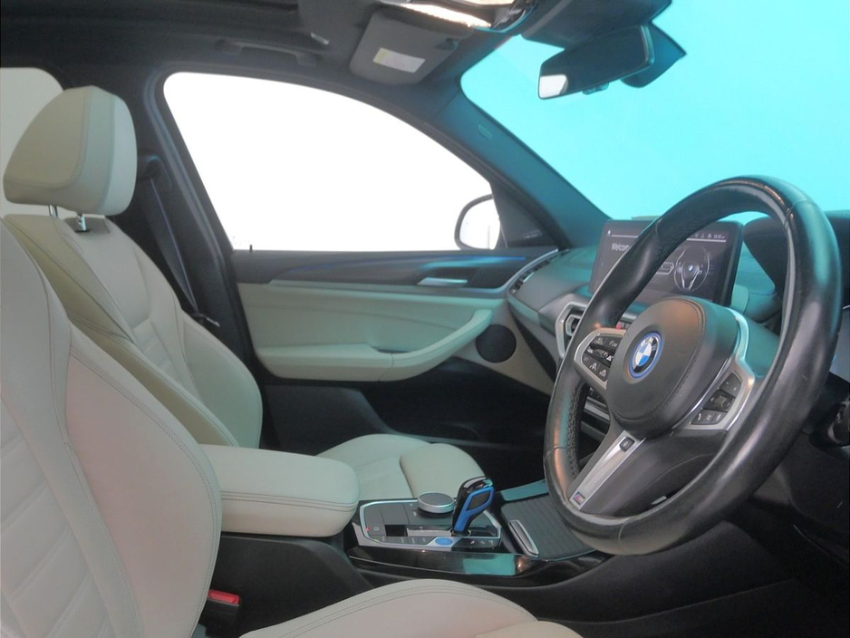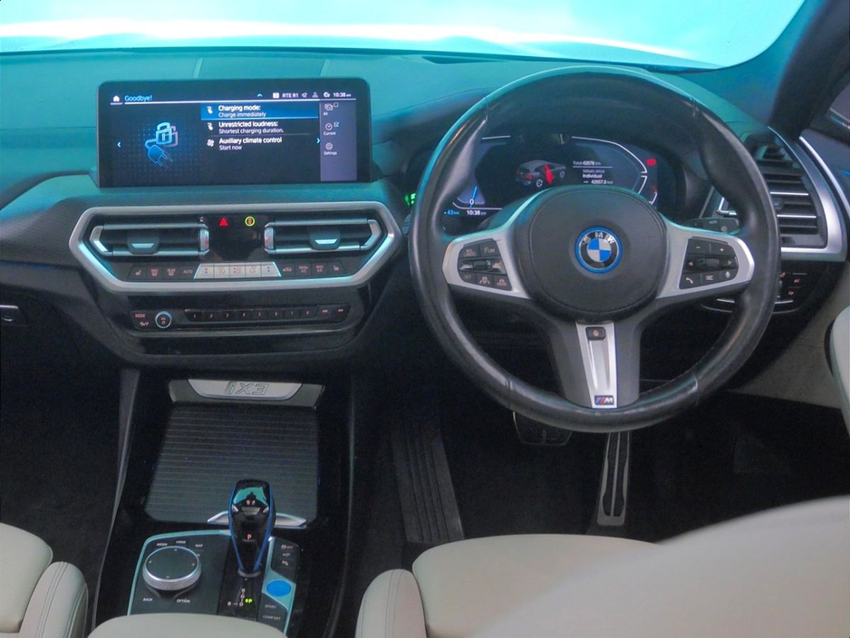 arl Chrome, Charging cable Professional (Mode 3), Galvanic Controls, eDrive Exterior Sound, BMW IconicSounds Electric, Luggage Net, Sun Protection Glass, Rear-view Mirror with Auto dimming, Deletion lumbar support/width adjustment, Sport seats, Front Lumbar Support, Backrest width adjustment, Heated front seats, Active Protection, Parking Assistant Plus, BMW Online Services, Connected Package Pro (limited duration), Drive Recorder, Deletion of iDrive touch function, Live Cockpit Professional, Gesture Control, DAB Radio, Harman/Kardon Surround Sound Audio, Indv. high-gloss shadowline- extended, M Sport Exterior Styling, High-gloss Shadowline Exterior Trim, Anthracite Headlining, iX3 Pro Package, Mode 2 Charge Cable, BMW Individual Lights Shadow Line, Wi-Fi functions. temporary deletion & pr, Decoding additional functions