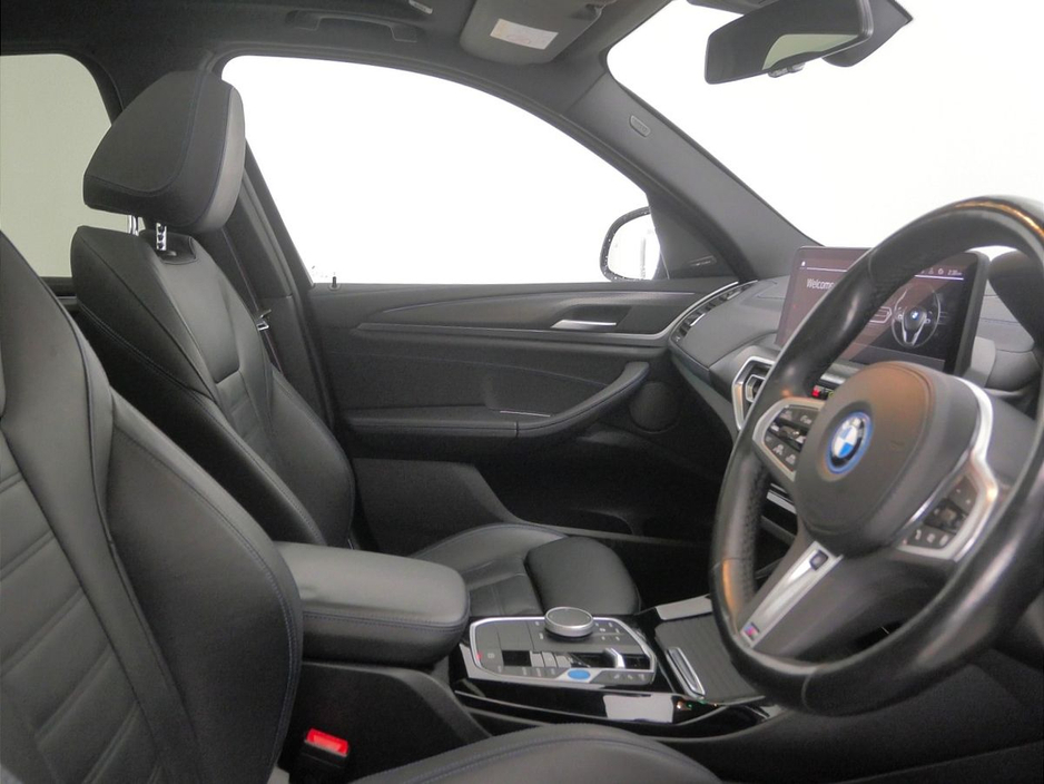 Belts, Aluminium Rhombicle with Pearl Chrome, Charging cable Professional (Mode 3), Flexible Charging Cable (Mode 2), Galvanic Controls, eDrive Exterior Sound, BMW IconicSounds Electric, Luggage Net, Sun Protection Glass, Rear-view Mirror with Auto dimming, Sport seats, Front Lumbar Support, Driver Seat Backrest Width Adjustment, Heated front seats, Active Protection, Parking Assistant Plus, BMW Online Services, Connected Package Pro (limited duration), Drive Recorder, Live Cockpit Professional, Gesture Control, DAB Radio, Harman/Kardon Surround Sound Audio, Indv. high-gloss shadowline- extended, M Sport Exterior Styling, High-gloss Shadowline Exterior Trim, Anthracite Headlining, Decoding additional functions, Control E, iX3 Pro Package, Model Specific Design Elements