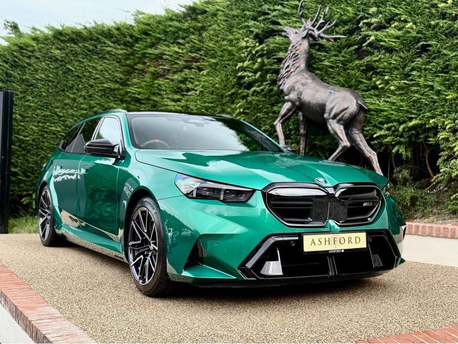2025 BMW M5 Touring Stunning example finished in Isle of Man Green and complimented by an silverstone leather interior with contrasting black inserts 4.4L V8 Hybrid producing 727BHP XDrive AWD sy ... stem Flat bottom steering wheel Carbon fibre wing mirror caps Paddle shift Programmable M modes Adjustable driving dynamics Valved exhaust system Bowers and Wilkins Sound system Heads up display Virtual cockpit Heated seats Ventilated seats Electric memory seats Comfort access seats Heated steering wheel Radar assisted cruise control Keyless start Keyless entry 360 Camera 360 parking sensors Wireless charging pad 4-Zone climate control Electric tailgate Contrasting black roof Roof spoiler Ambient lighting M Seatbelts And so much more SIMI approved. DoneDeal trusted dealer We are located 25MINS north of Gorey and 25 mins south of the red cow. Please always call ahead as our stock changes daily ,Finance can be arranged . Trade ins welcome Follow us on Instagram @ashfordmotors. 152,950 1850km Central Locking, Electric Windows, Airbag, Cruise Control, Rear Spoiler, Centre Armrest, Multi-function steering wheel, Roof Rails, Satellite Navigation, Traction Control, Anti-Theft System, Parking Sensors, Bluetooth, Isofix, Apple Car Play, Android Auto, Active Safety Braking / City Brake / Collision Alert, Stop/Start Button, External Devices Connectivity, Cup holders, Stability control