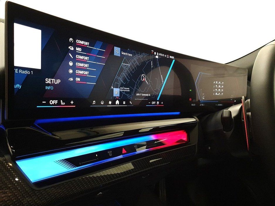 terior Camera, Charging cable Professional (Mode 3), eDrive Exterior Sound, BMW IconicSounds Electric, Panoramic Glass Roof, Sun Protection Glass, Electric Memory Seats, Parking Assistant Plus, BMW Online Services, Connected Package Pro (limited duration), Bowers & Wilkins Surround Sound System, Storage for wireless charging, Personal eSIM, Live Cockpit Professional, DAB Radio, Indv. high-gloss shadowline- extended, High-gloss Shadowline Exterior Trim, Anthracite Headlining, COC additional contents, Plus preparation, 20''/21'' 952 M Light Alloy Wheels Black B, Travel and Comfort System, Front and Rear Heated Seats, Roller Sunblinds, Carbon fibre Silver threads high gloss i, Ventilated Front Seats, M Driver's Pack, Control E, Comfort Pack