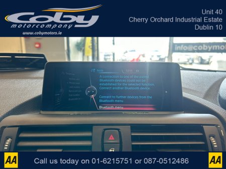 2014 BMW 1 Series 1.6 5DR AUTO. Sat Nav, Pristine Car with only 84km, 2 Keys, New NCT done before collection. Full Leather, Alloy Wheels, Dual Climate Control, Heated Seats, Reverse Camera, Bluetooth, MFSW and more.