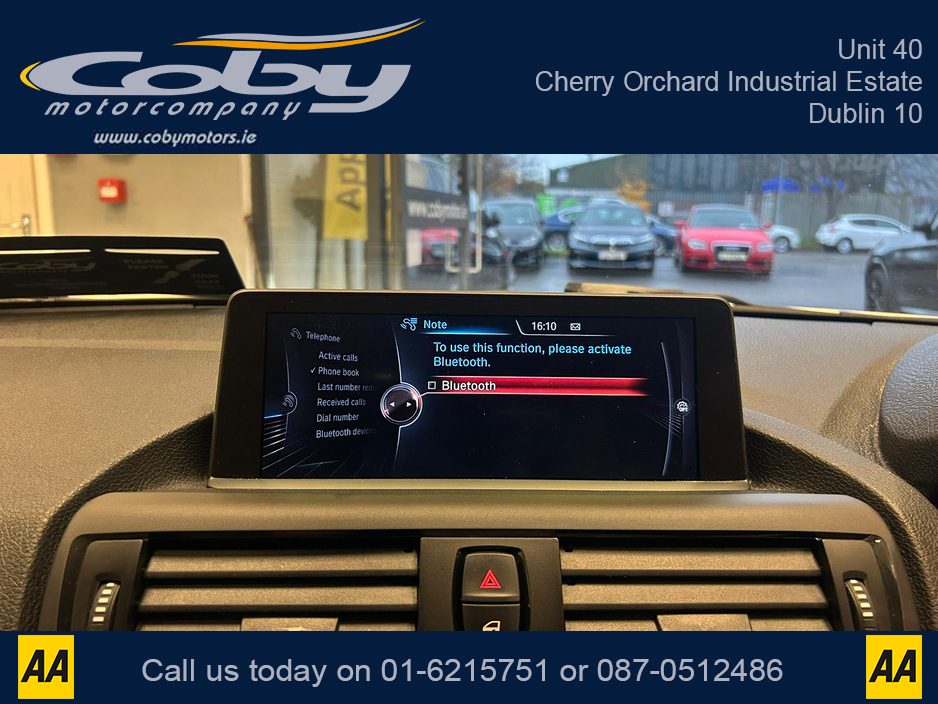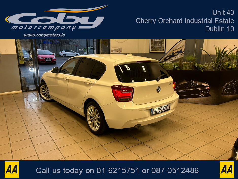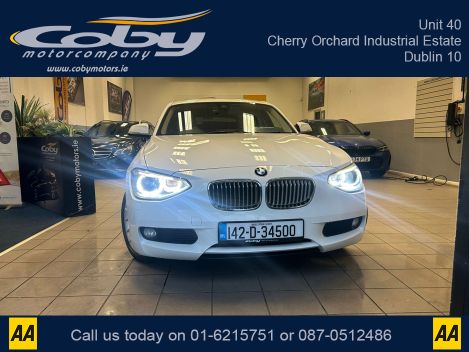 2014 BMW 1 Series 1.6 5DR AUTO. Sat Nav, Pristine Car with only 104km, 2 Keys, New NCT done before collection. Full Leather, Alloy Wheels, Dual Climate Control, Heated Seats, Reverse Camera, Bluetooth, MFSW and more.
