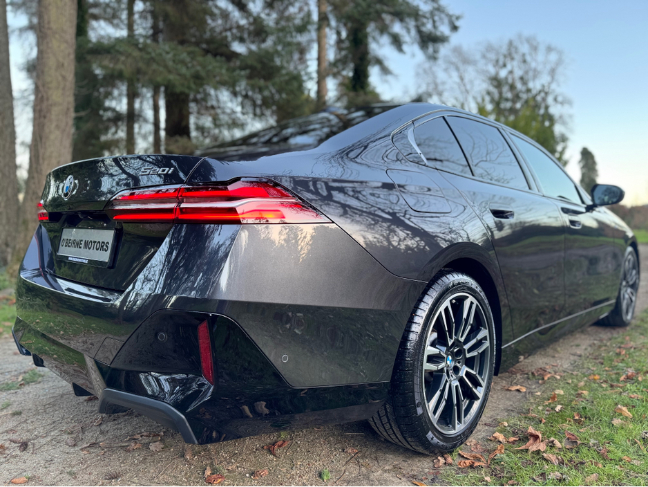 2023 232D Reg BMW G60 520i MSport finished in Sophisto Grey Metallic with a full Black Leather upholstery.