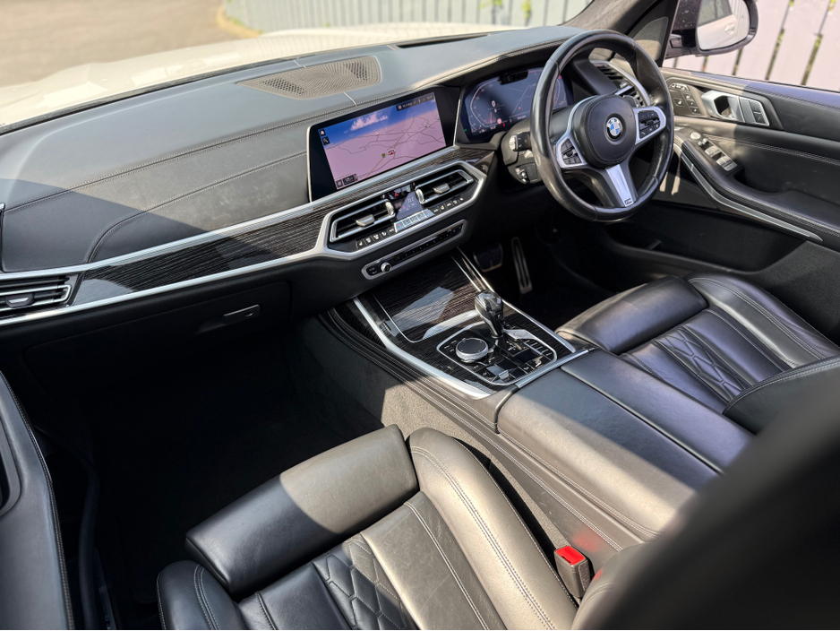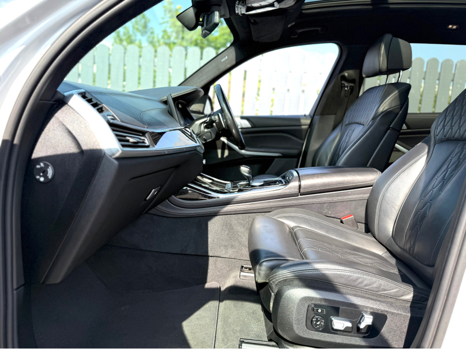 Featuring 22-inch Diamond Cut Alloy Wheels, Blue BMW M-Sport Brake Callipers and is finished in Mineral White Metallic. Upgraded Harman & Kardon Sound System.