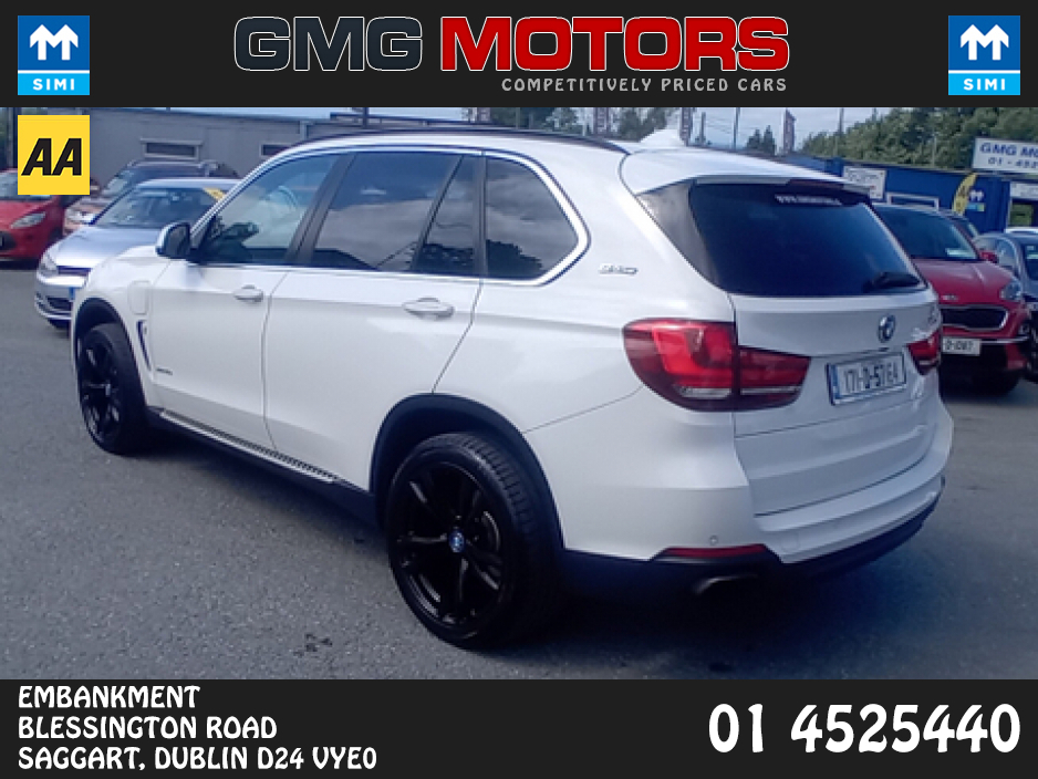 WELCOME TO GMG MOTORS FULLY APPROVED AA AND SIMI GARAGE. THIS STUNNING BMW X5 COMES FULLY SERVICED, FULLY VALETED AND WITH WARRANTY. CONTACT SALES ON 01-4525440. OPENING HOURS MONDAY-FRIDAY 9.00-6.00 ... PM SATURDAY 10.00AM-1.00PM Air Conditioning, Central Locking, CD Player, Full Service History, Immaculate condition, Electric Windows, Airbag, Alarm, Alloy Wheels, Cruise Control, Electric Mirrors, Electric Seats, Fog Lamps, Immobiliser, Full Leather, Privacy Glass, Heated Seats, Automatic Lights, Centre Armrest, Multi-function steering wheel, Roof Rails, Climate Control, Satellite Navigation, Traction Control, Metallic Paint, Multiple Air Bags, Anti-Theft System, Parking Sensors, 3 Month Warranty, 12 Month Warranty, Bluetooth, Remote Central Locking, EBD, Electronic handbrake, Folding rear seats, Isofix, Roadside assistance, History Checked, Finance Checked, Panoramic Sunroof, Heated Front Seats, Front Parking Sensors, Active Safety Braking / City Brake / Collision Alert, Adaptive Cruise Control, Stop/Start Button, Touch Screen Media Control, Driver Fatigue Warning, Dual Zone Climate Control, Daytime Running Lights, External Devices Connectivity, Cup holders, Remote boot/hatch/rear door release, Stability control