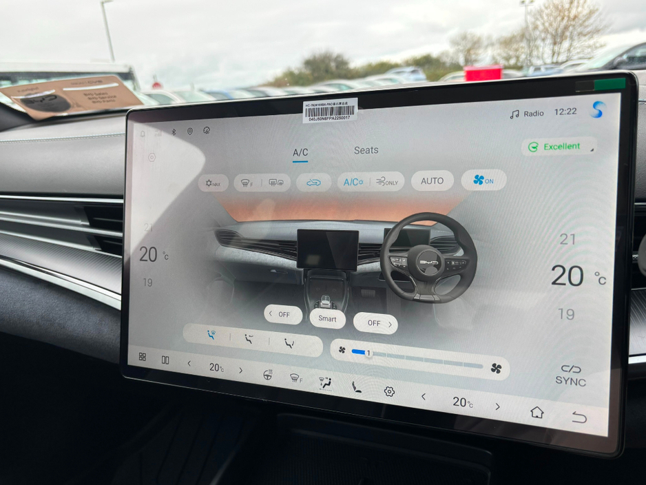 This Seal Design comes with an unrivalled level of standard specification with features including Panoramic roof - Adaptive Cruise Control (ACC) & Intelligent Cruise Control (ICC) with Intelligent Speed Limit Information and Control - Traffic Jam Assist - 12-speaker Dynaudio Audio sound system - Apple Carplay and Android Auto - Dual wireless phone charging pads - Keyless system entry - 360 degree cameras - Front and rear parking radar sensors - Front sports seats, fully electric, with ventilation, heating, position memory & integrated headrest - Leather, multi-function and heated steering wheel - Dual zone auto air conditioning with PM2.5 air filter - Negative-ion generator - Front and Rear Cross Traffic Alert with front cross traffic braking - Traffic Sign Recognition - Lane Departure Assistant and Lane Departure Warning - Electric tailgate - 19-inch twin colour aluminium alloy wheels - LED headlights with High beam assist - Remote climate control - Split folding rear seats (60:40) - Multi-colour ambient interior lighting - ISOFIX on outer rear seats and front pass seat - Child Forgetting Detection (CFD) - Software Over-the-Air (OTA) functions - 11kW AC charging power - 150kW DC charging power.