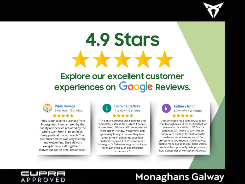Monaghans Galway is a family business, established in 1955. We pride ourselves on customer service and endeavour to provide the best experience possible. Our high Google review score of 4.9 stars is testament to this.