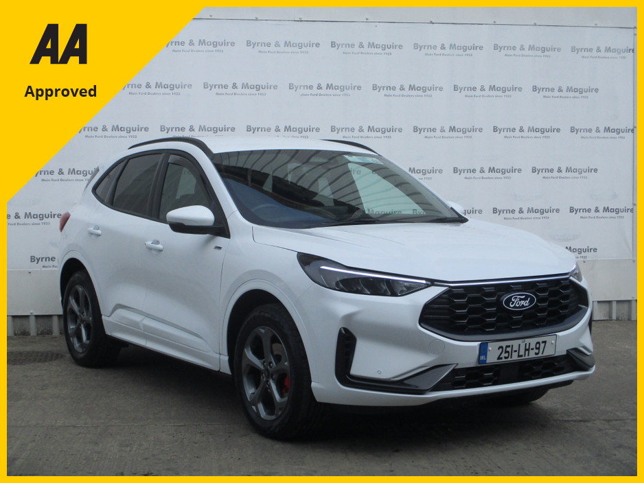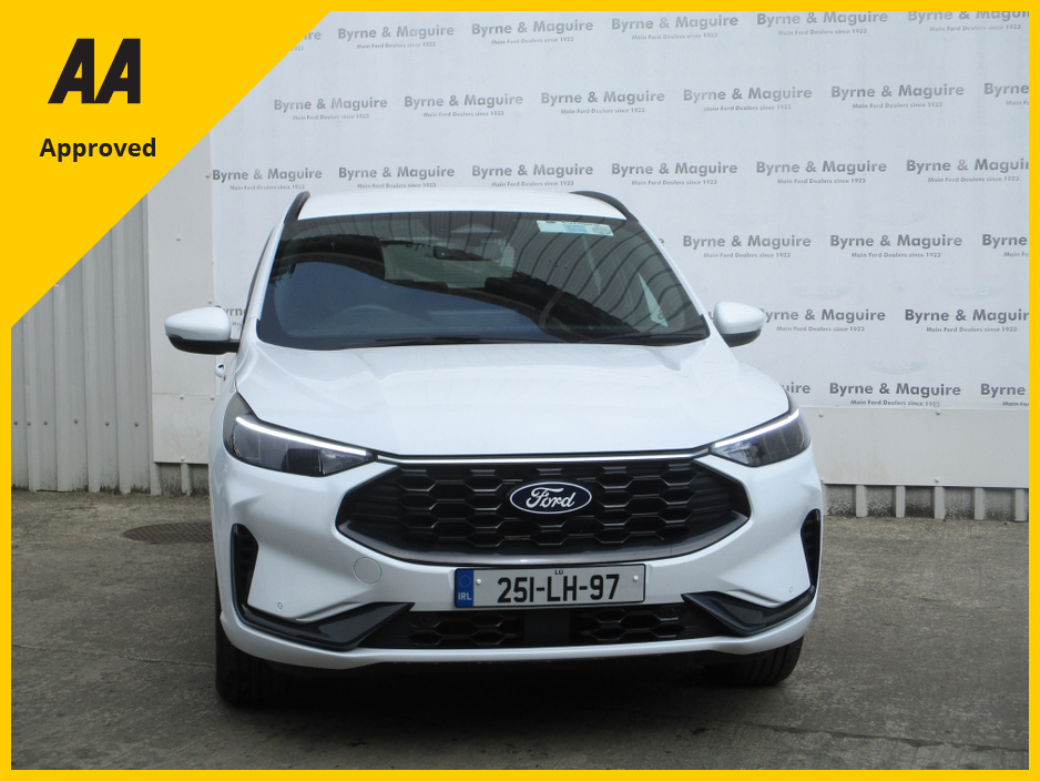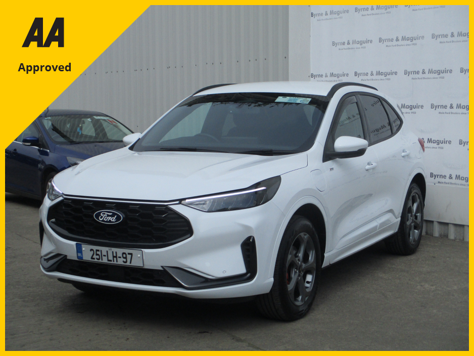 THIS 2025 DEMO FORD KUGA 2.5 PHEV ST LINE IS STUNNING IN FROZEN WHITE AND COMES PREPARED TO THE HIGHEST STANDARD SERVICED IN OUR FORD APPROVED WORKSHOP VALETED INSIDE AND OUT AND FULLY GUARANTEED W ... ITH A NATIONWIDE 12 MONTH AA ROADSIDE ASSISTANCE COVER. TRADE IN WELCOME AND FINANCE ARRANGED. RETAIL PRICE OF €46,950 OR CASH PRICE OF €45,950. CALL BRENDAN ON 0872051161 Air Conditioning, Central Locking, Immaculate condition, Electric Windows, Airbag, Alarm, Alloy Wheels, Cruise Control, Electric Mirrors, Fog Lamps, Immobiliser, Rear Spoiler, Privacy Glass, Automatic Wipers, Centre Armrest, Multi-function steering wheel, Roof Rails, Climate Control, Satellite Navigation, Traction Control, Multiple Air Bags, Anti-Theft System, Parking Sensors, 12 Month Warranty, Bluetooth, Remote Central Locking, Isofix, History Checked, Apple Car Play, Android Auto, Space Saver Spare Wheel, Wireless Smartphone Control, Active Safety Braking / City Brake / Collision Alert, Stop/Start Button, Dual Zone Climate Control, Daytime Running Lights, 2 Keys, External Devices Connectivity, Cup holders, Stability control