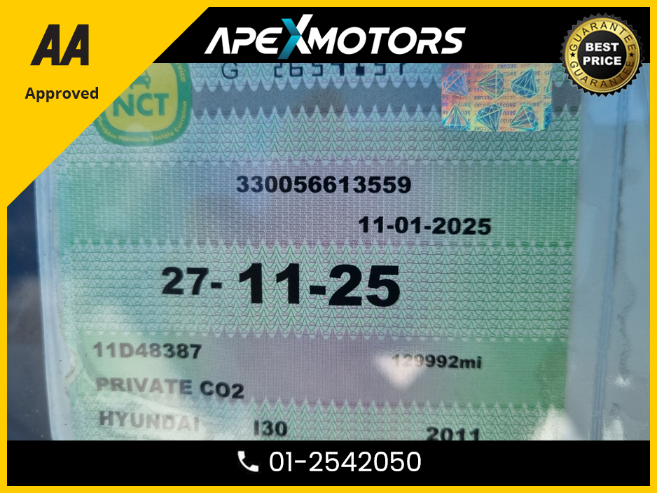 2011 Hyundai i30 1.6 COMFORT CRDI 5DR * AA APPROVED * 101 SAFETY CHECKLIST * IMMACULATE * TOP-SPEC 5DR HATCH * CRUISE CONTROL and SPEED LIMITER * NCT NOV-26 * LOW TAX * 12-MONTH ROADSIDE ASSIST * 01-2542050